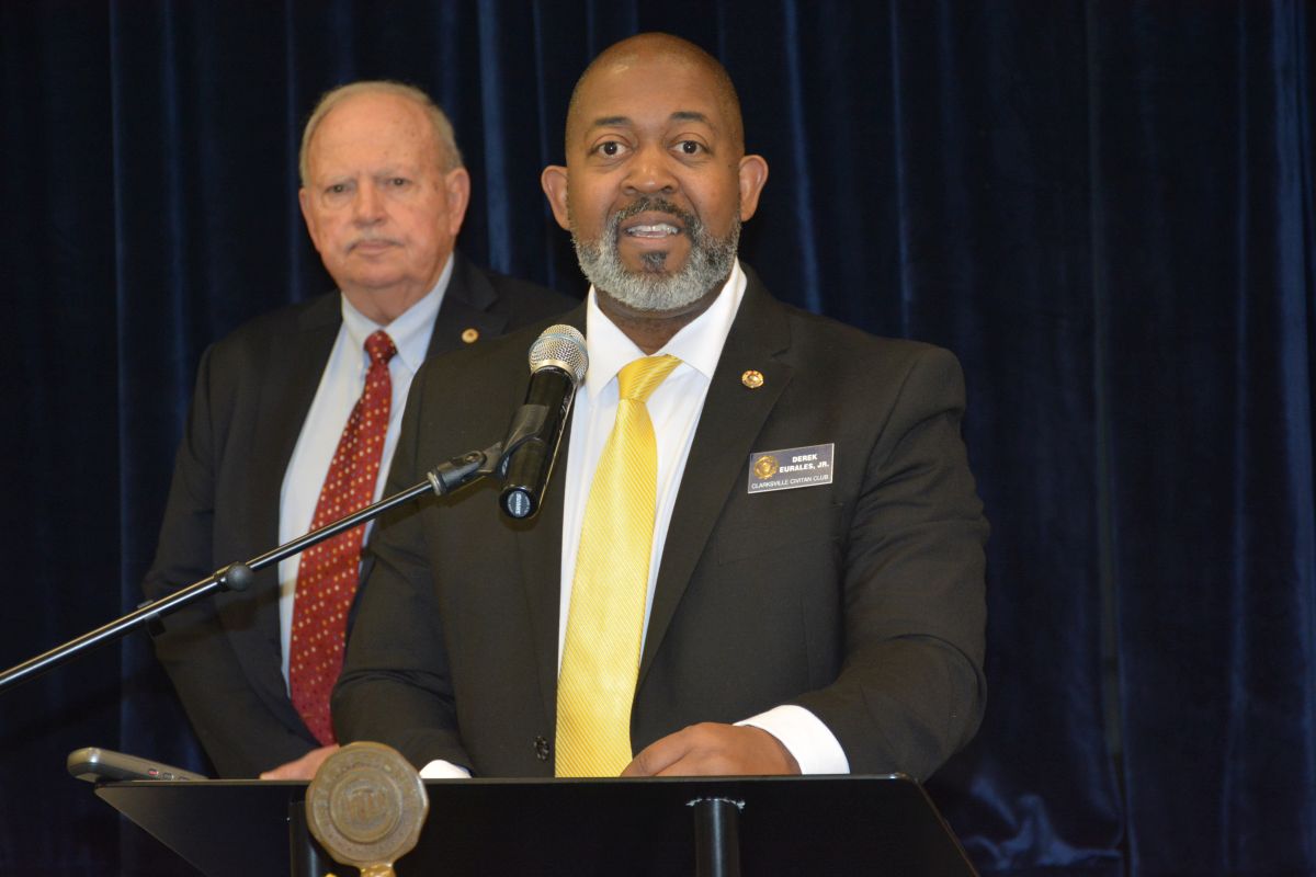 Civitan President Derek Eurales Jr. speaking at the Clarksville Civitan Club’s 100th Anniversary Celebration on, July 27, 2022. (Lee Erwin)