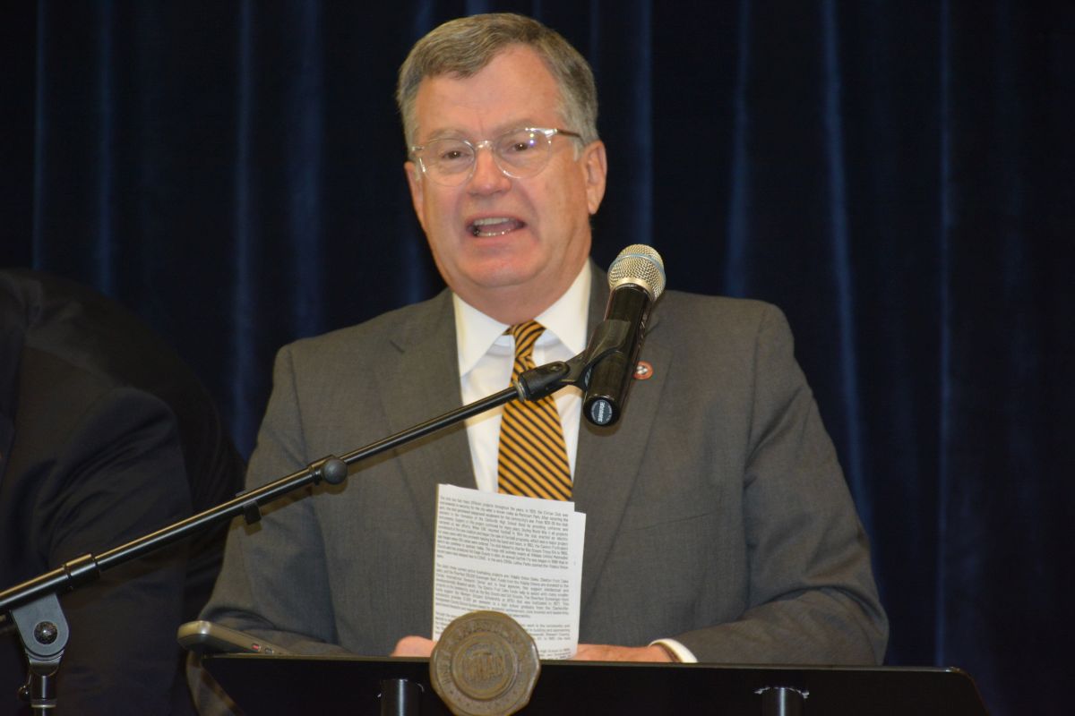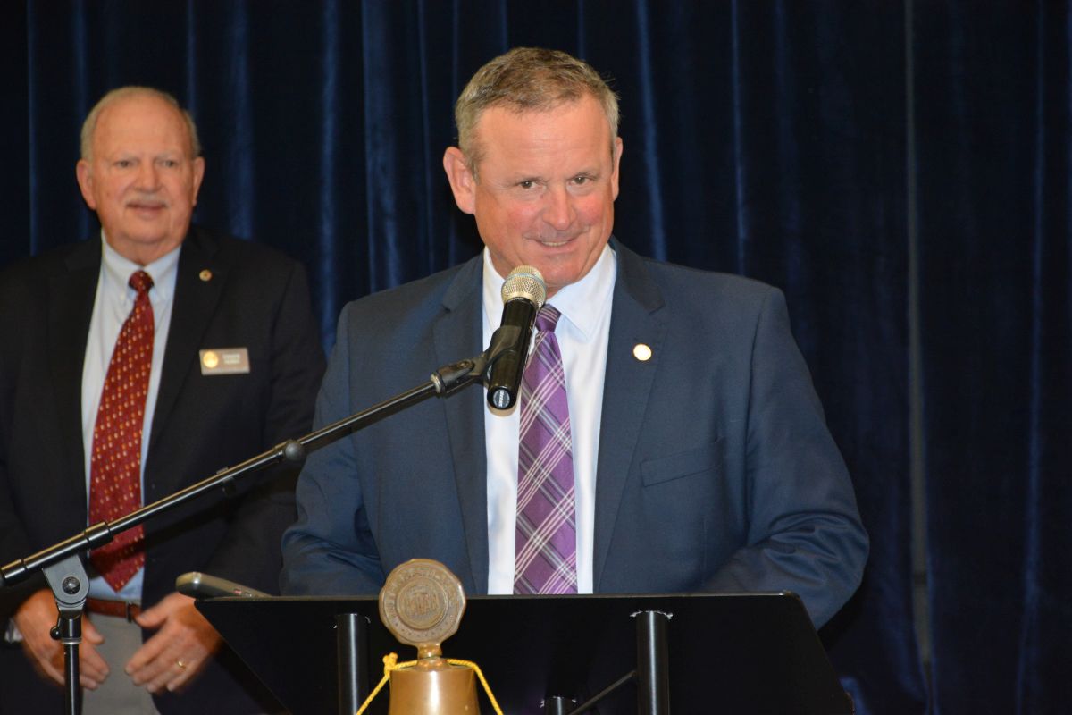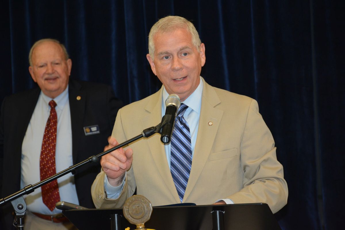 Montgomery County Mayor Jim Durrett speaking at the Clarksville Civitan Club’s 100th Anniversary Celebration on, July 27, 2022. (Lee Erwin)