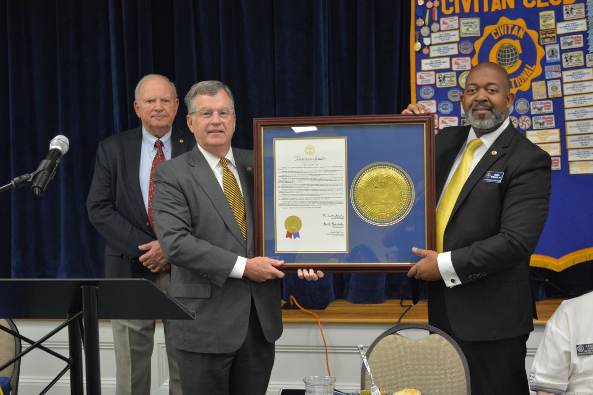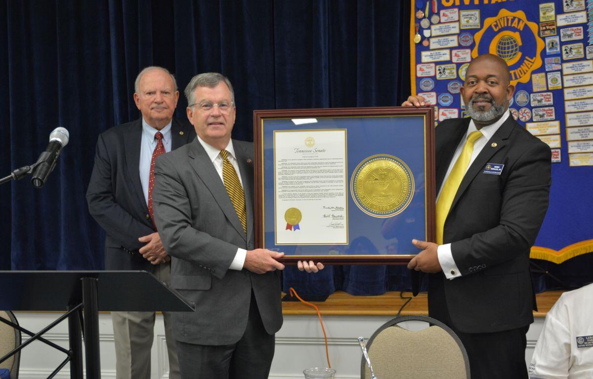 Tennessee State Senator Bill Powers and Civitan President Derek Eurales Jr. at the Clarksville Civitan Club’s 100th Anniversary Celebration on, July 27, 2022. (Lee Erwin)