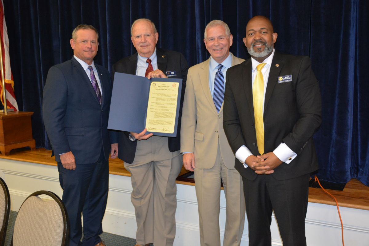 Mayor Jim Durrett, Chuck Terry, Mayor Joe Pitts, & Civitan President Derek Eurales Jr. at the Clarksville Civitan Club’s 100th Anniversary Celebration on, July 27, 2022. (Lee Erwin)