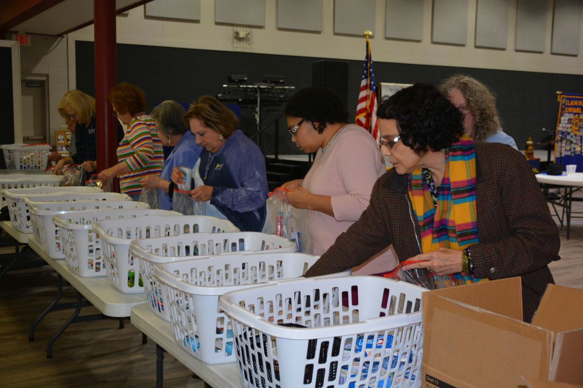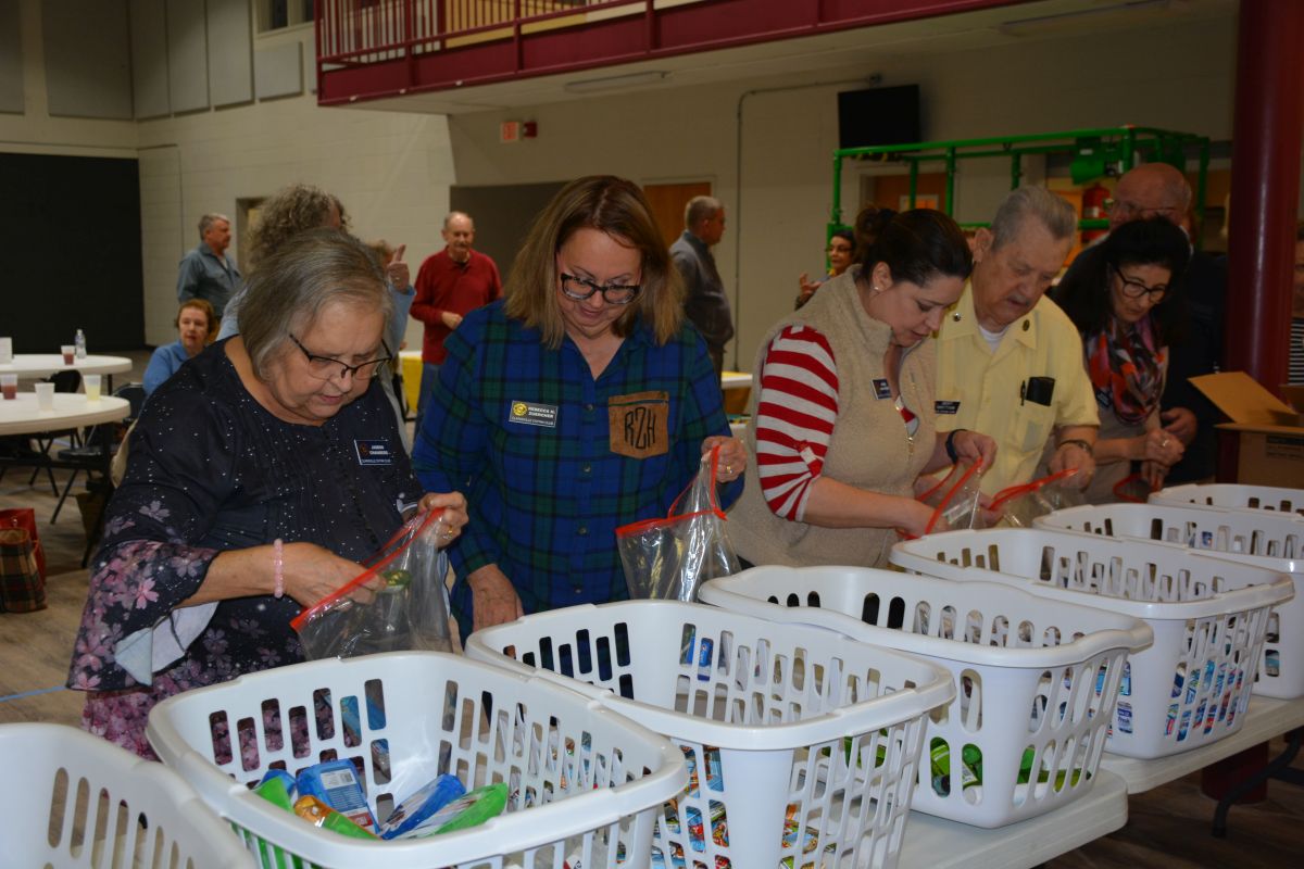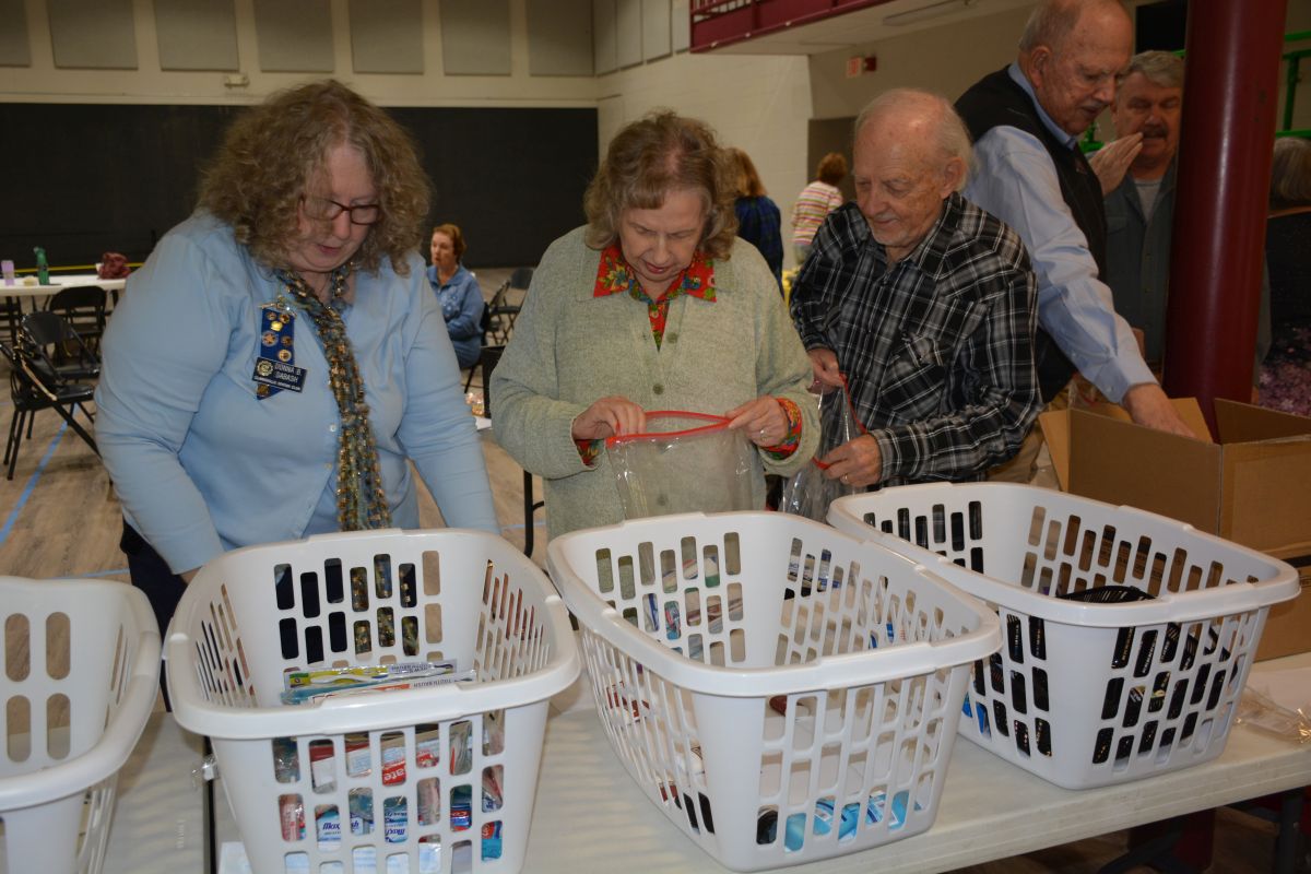At their weekly meeting, members of the Clarksville Civitan Club filled bags with needed items they had purchased that will be donated to the homeless.