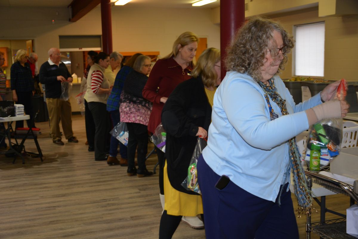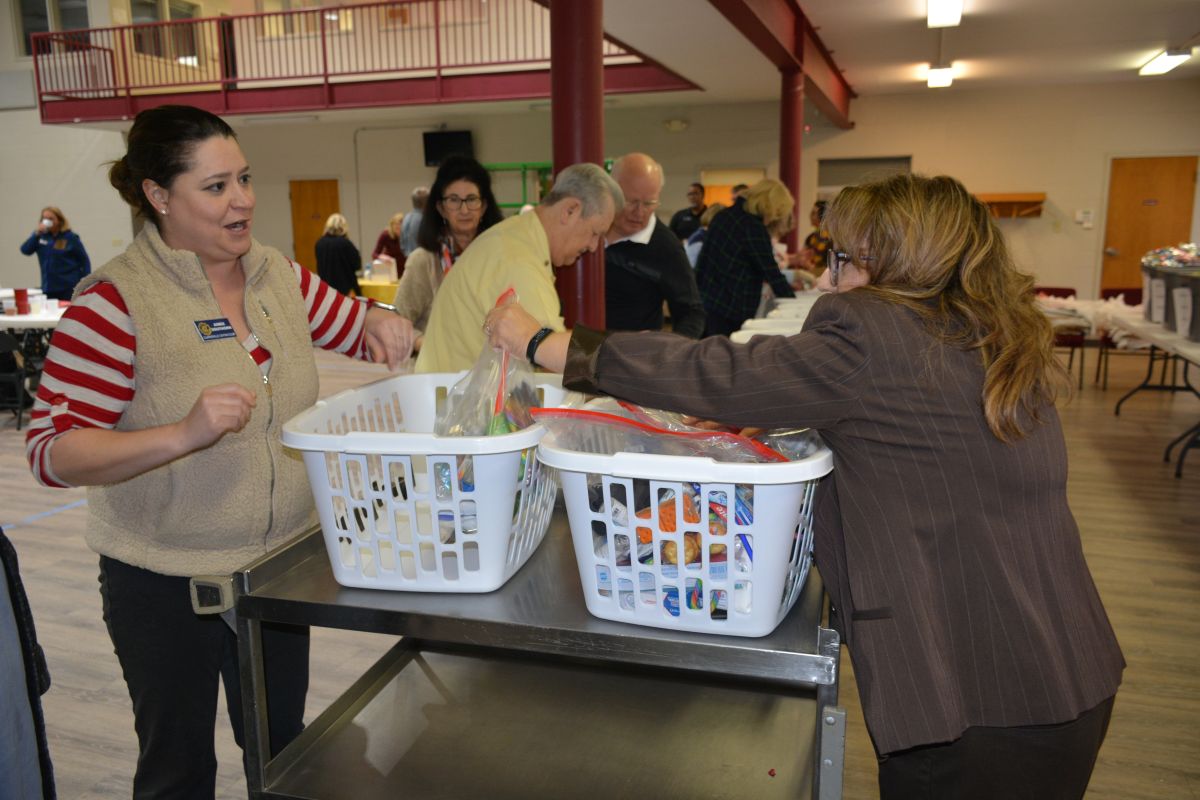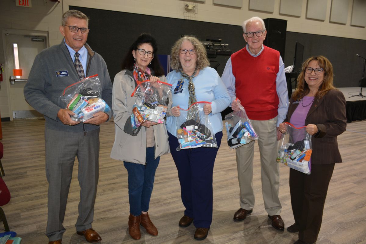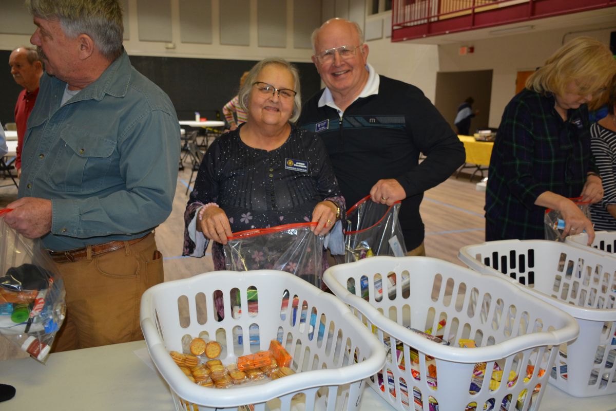 At their weekly meeting, members of the Clarksville Civitan Club filled bags with needed items they had purchased that will be donated to the homeless.