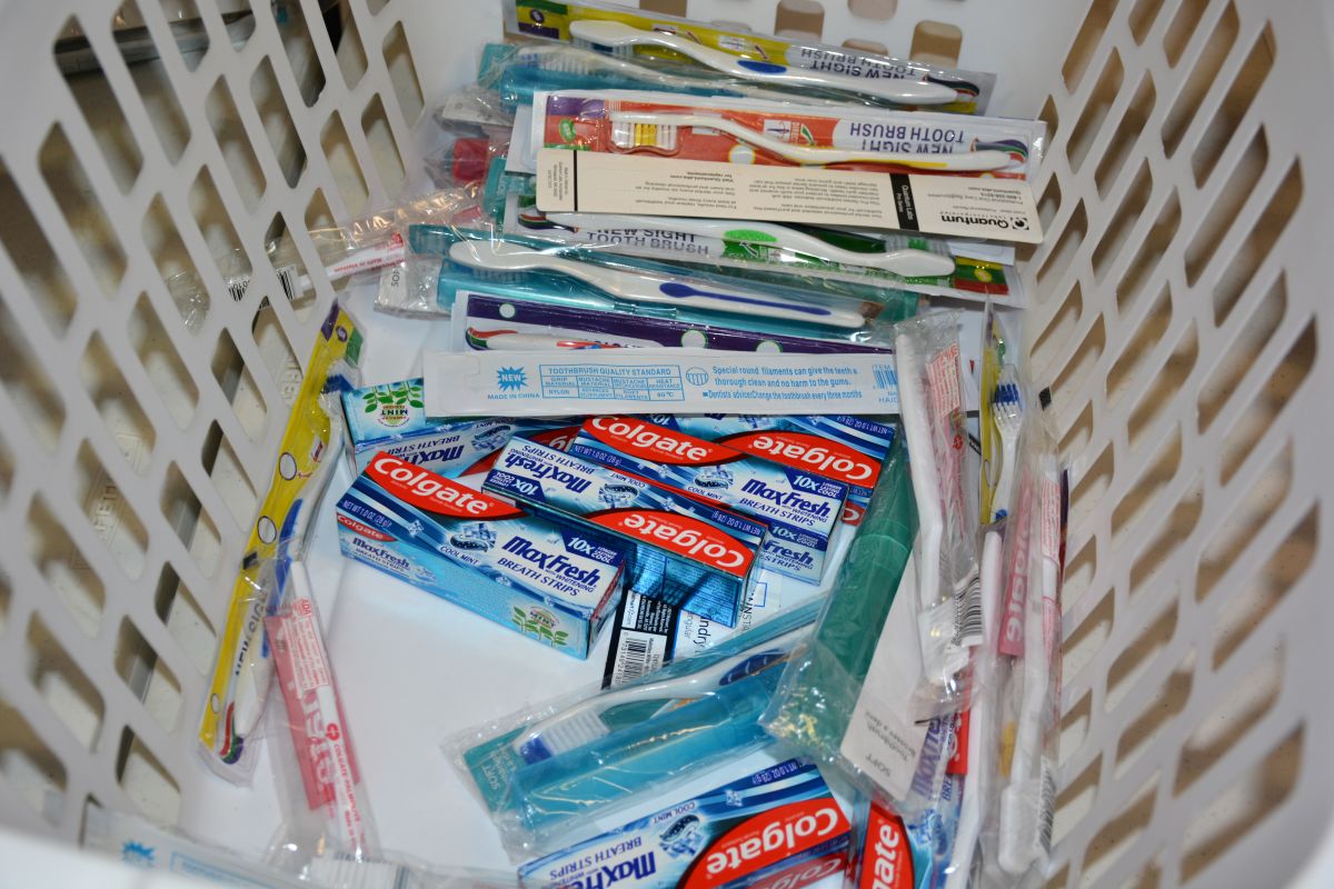 Toothpaste & toothbrushes placed in the Blessing Bags filled with supplies for the homeless in the community by members of the Clarksville Civitan Club on, Jan. 18, 2023. (Lee Erwin).