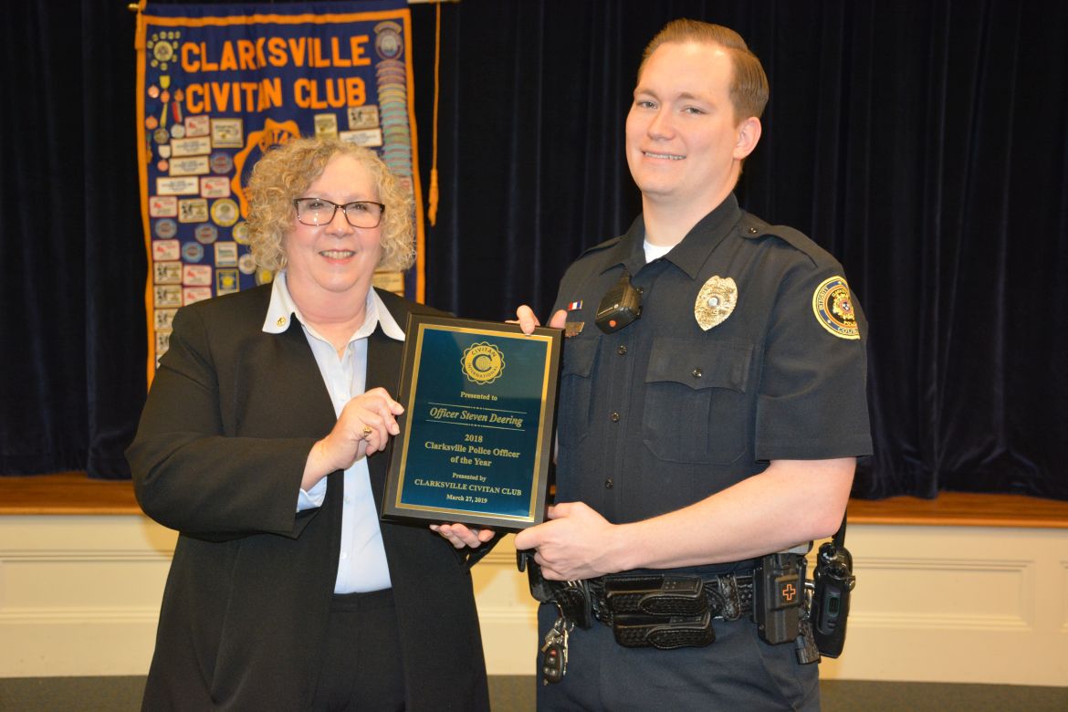Clarksville Police Officer Steven Deering was recognized for his actions following a pursuit in June of 2018 when shots were fired at his patrol car by a suspect. In November 2018 Deering is credited with helping save the life of a shooting victim and was given the Clarksville Police Department’s Life Saver Award.