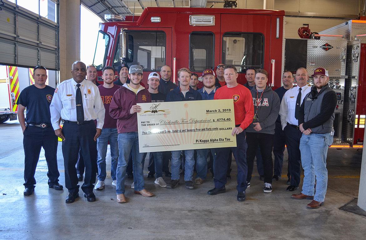 CLARKSVILLE, Tenn. (CLARKSVILLENOW) – The Pi Kappa Alpha Fraternity -ETA Tau Chapter from Austin Peay State University presented a check for $4,774.40 to Clarksville Fire Rescue last week.