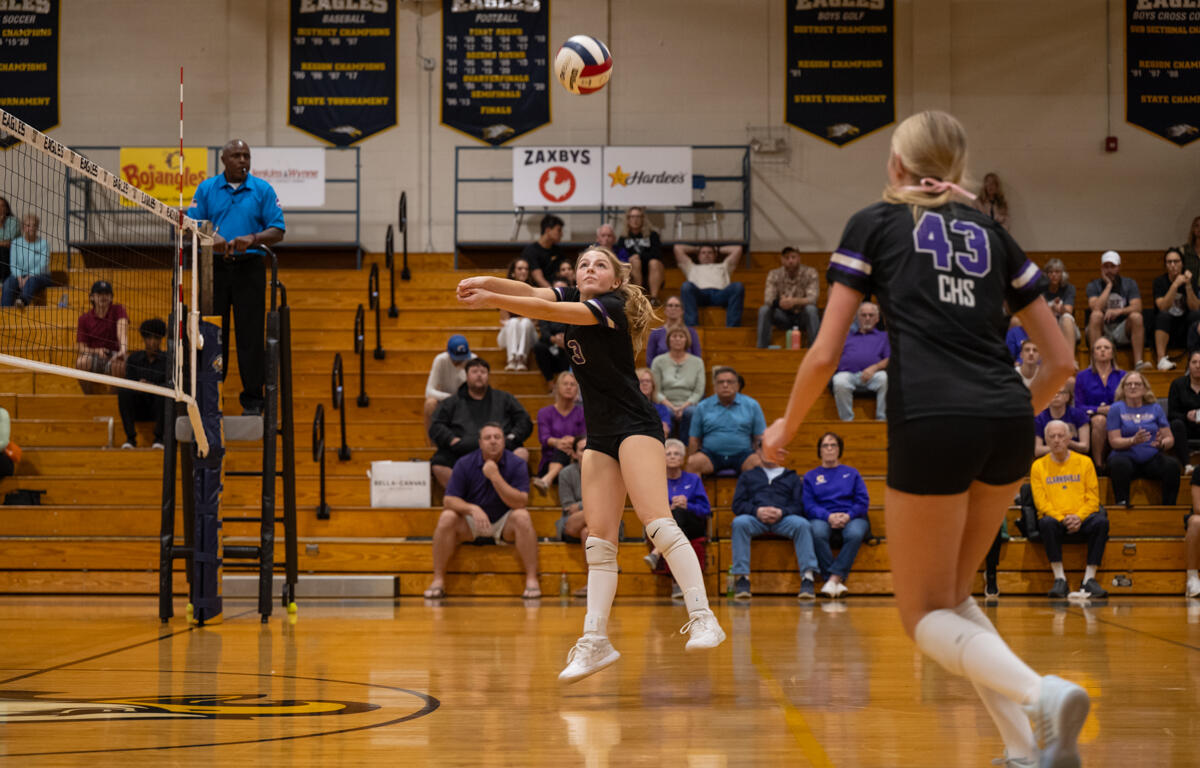 The first set was back and forth, as both teams were fired up for a shot at the district championship. CHS was able to edge out a 25-20 set win to take the first. Clarksville High then dominated set two, winning 25-11, and carried that momentum all the way to the third set, winning 25-15.