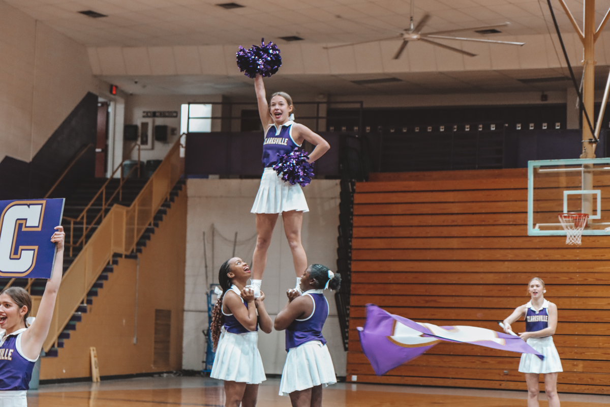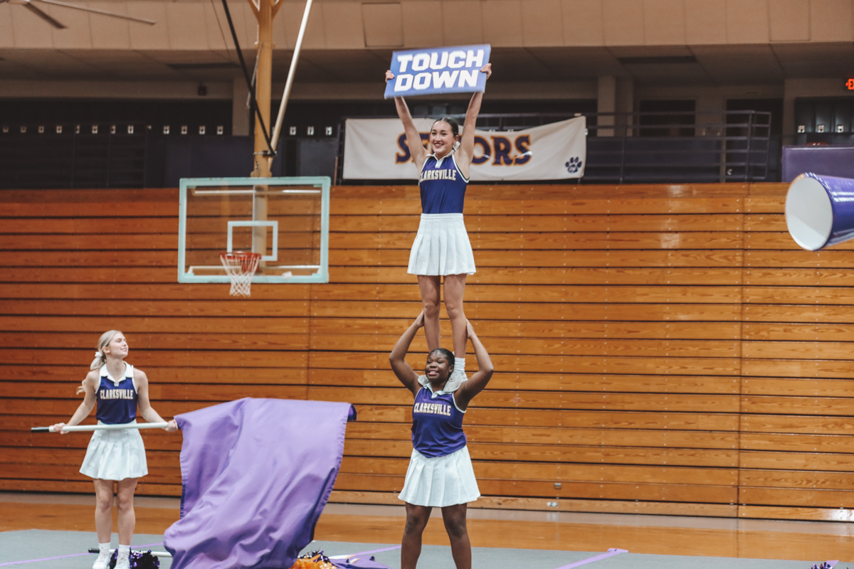 Clarksville High School cheerleaders host a Nationals sendoff demonstration on Feb. 4, 2024. (Hannah Hutchins)