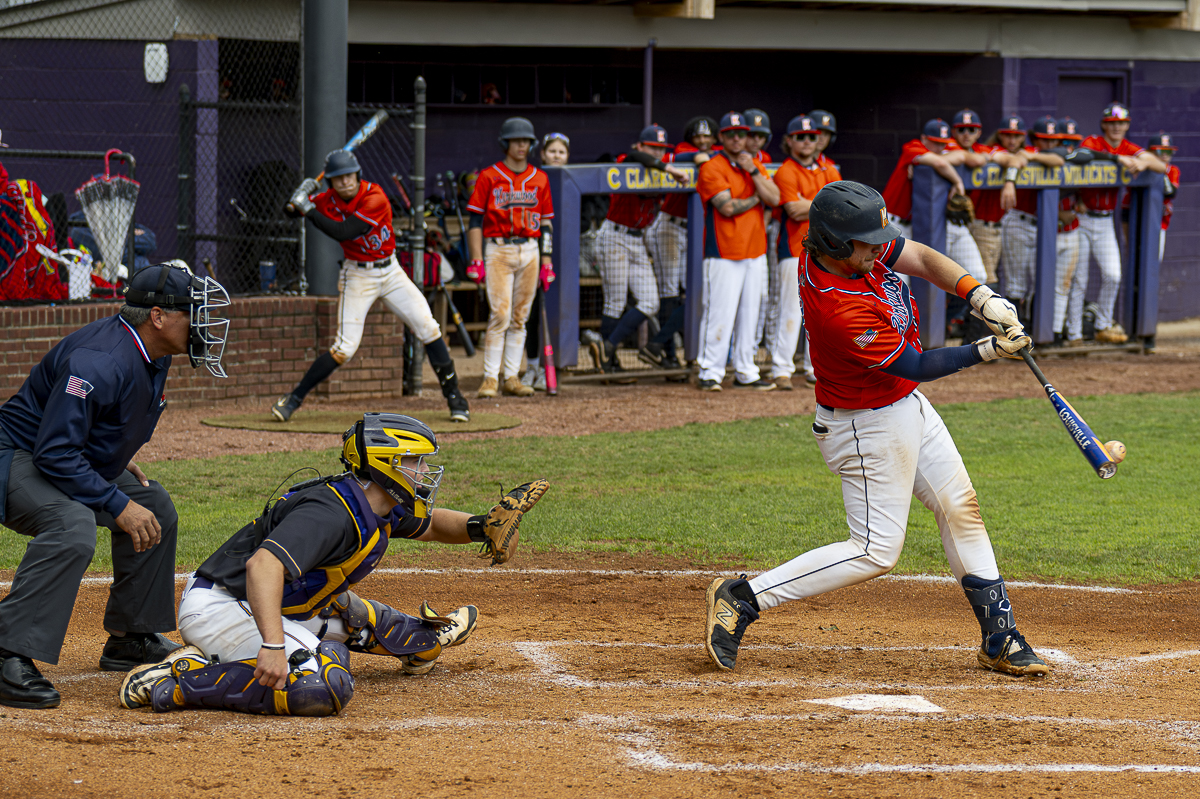 Early on, the scoring was slim, with both starting pitchers dealing. Kirkwood’s Matthew Dirks allowed only six hits in five innings pitched, and Clarksville’s Porter Murff struck out 10 in five innings. However, the Wildcats’ third baseman broke the game open in the bottom of the fifth with a three-run homer, giving him his fifth RBI on the night.