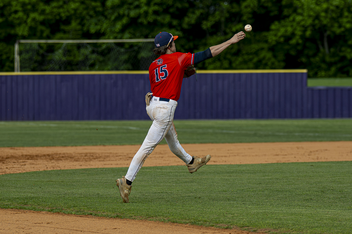 #15 Alex Rosenburger of the Kirkwood Cobras with the impressive play as short stop against the Clarksvilel High Wildcats in the District Semifinals on May 4, 2025 (Jeff Danault)