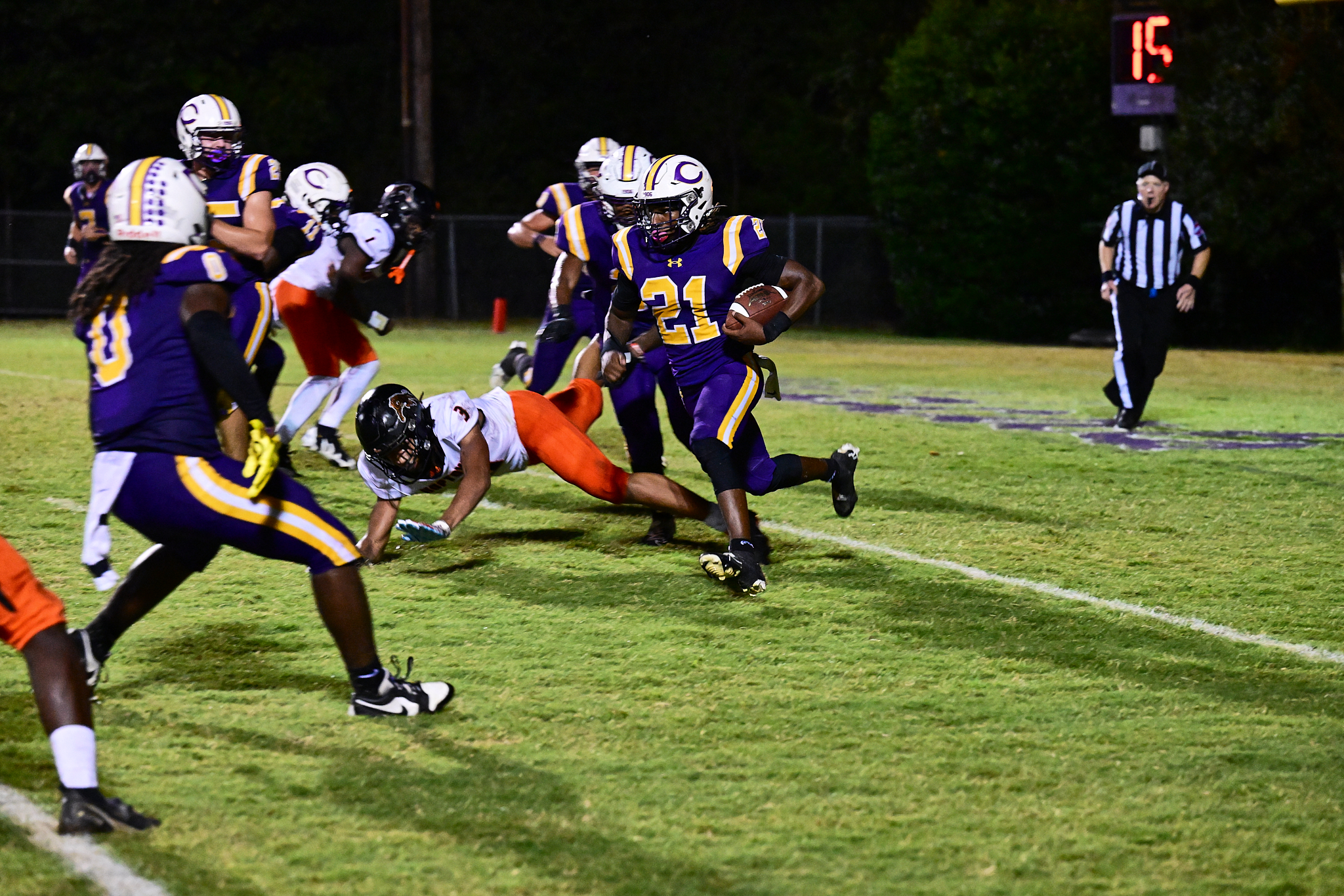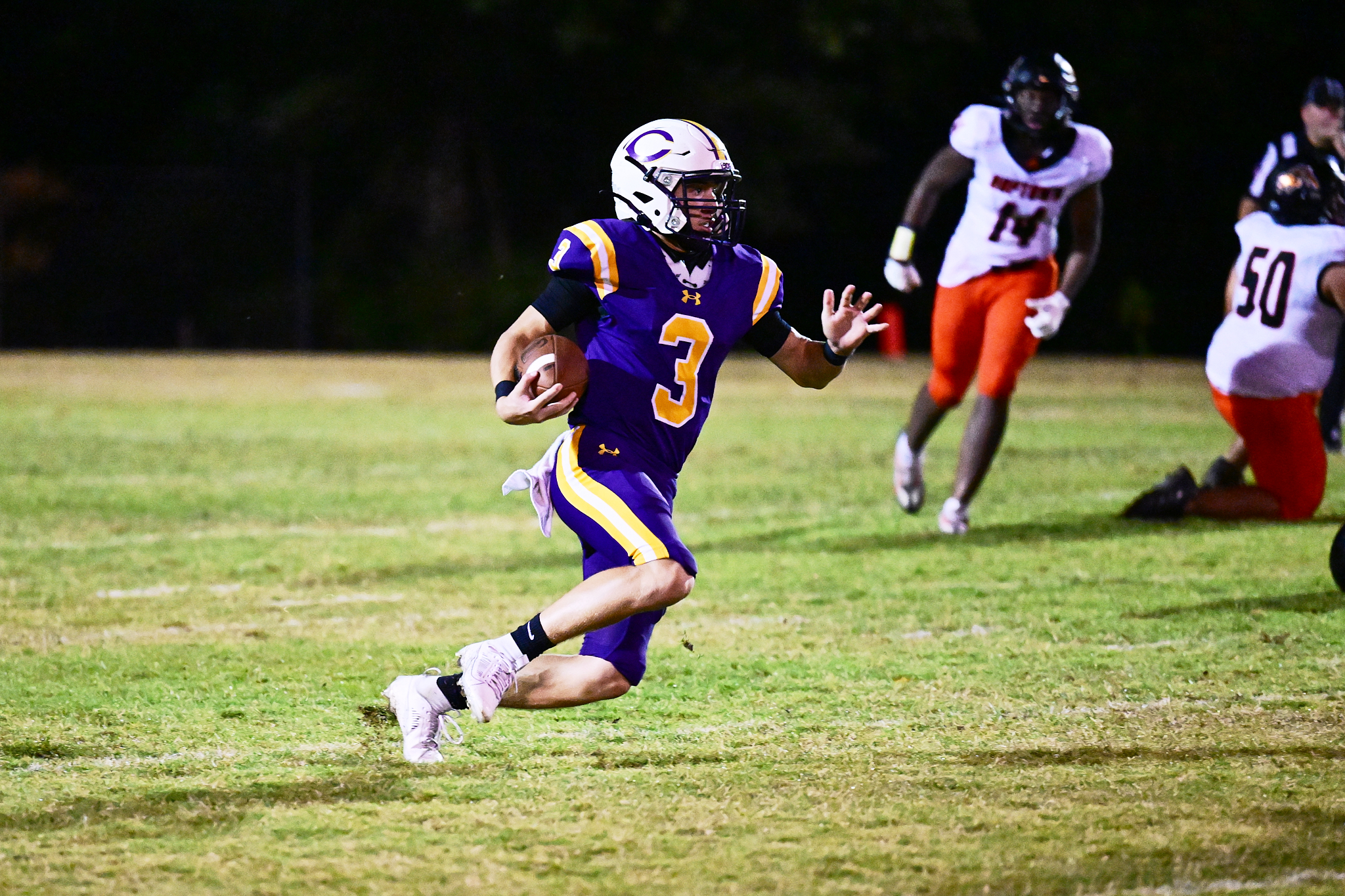 The first quarter was dominated by running back James Dalrymple, as he collected two touchdowns in the first 12 minutes of the game. There were a lot of mistakes in the second quarter that kept the game within reach for the Tigers, and Clarksville head coach Isaac Shelby told his guys at half that they just needed to ease up a little.