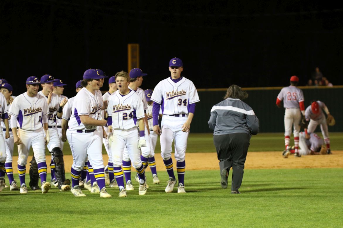 The Wildcats trailed 3-2 in the bottom of the seventh inning with two outs. CHS’s Garrett Spain hit a ball and two runs scored off an error. The Wildcats walked-off with a 4-3 district win. Spain went 2 for 4 to lead CHS.