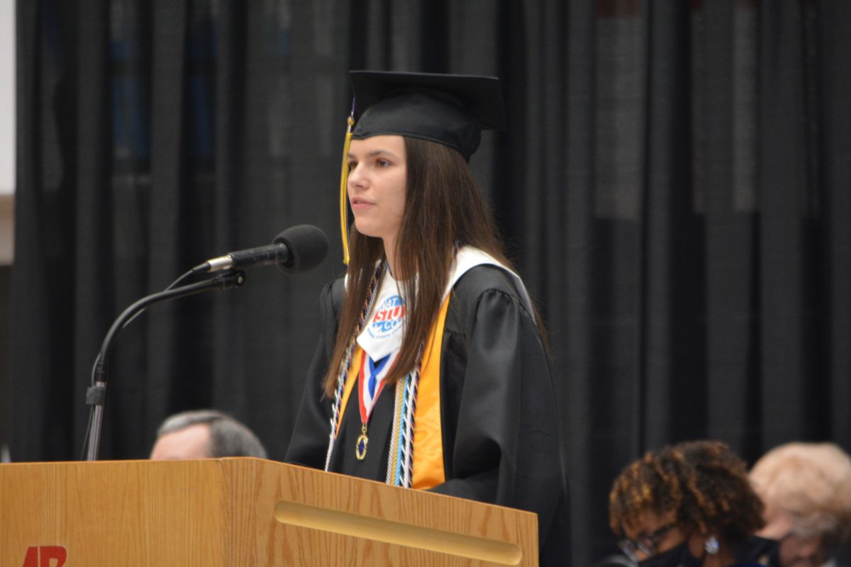 Salutatorian Blakely Wilkinson and Valedictorian Erin Crawford for the Class of 2021 shared thoughts with the graduates about the past year as well as the past four years as students. Principal Bryan then congratulated each student as their names were read and they walked across the stage.