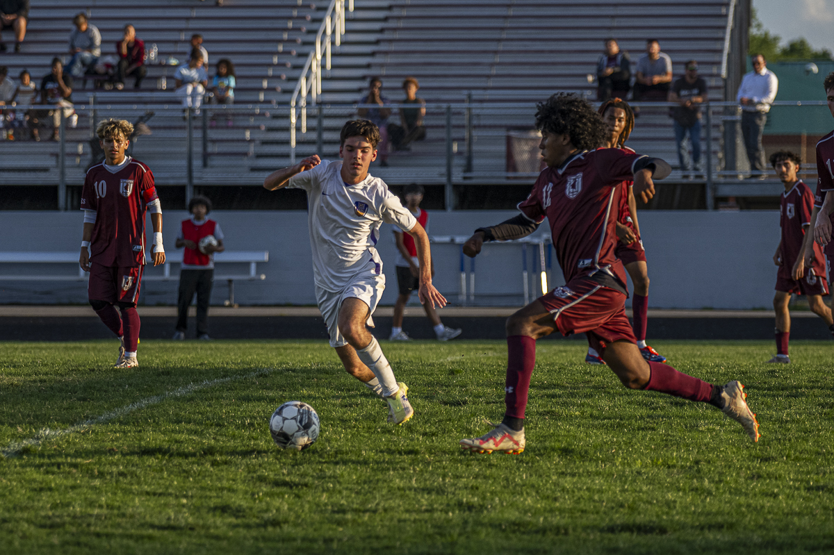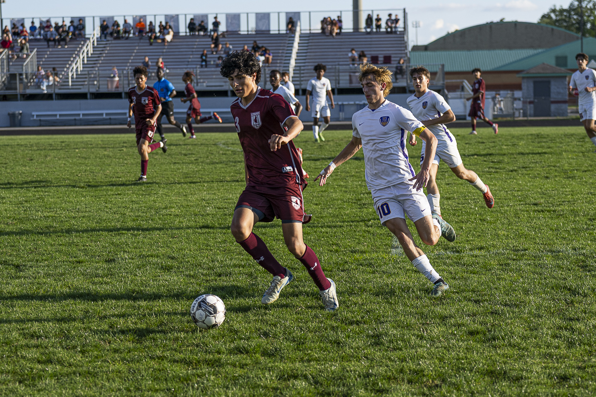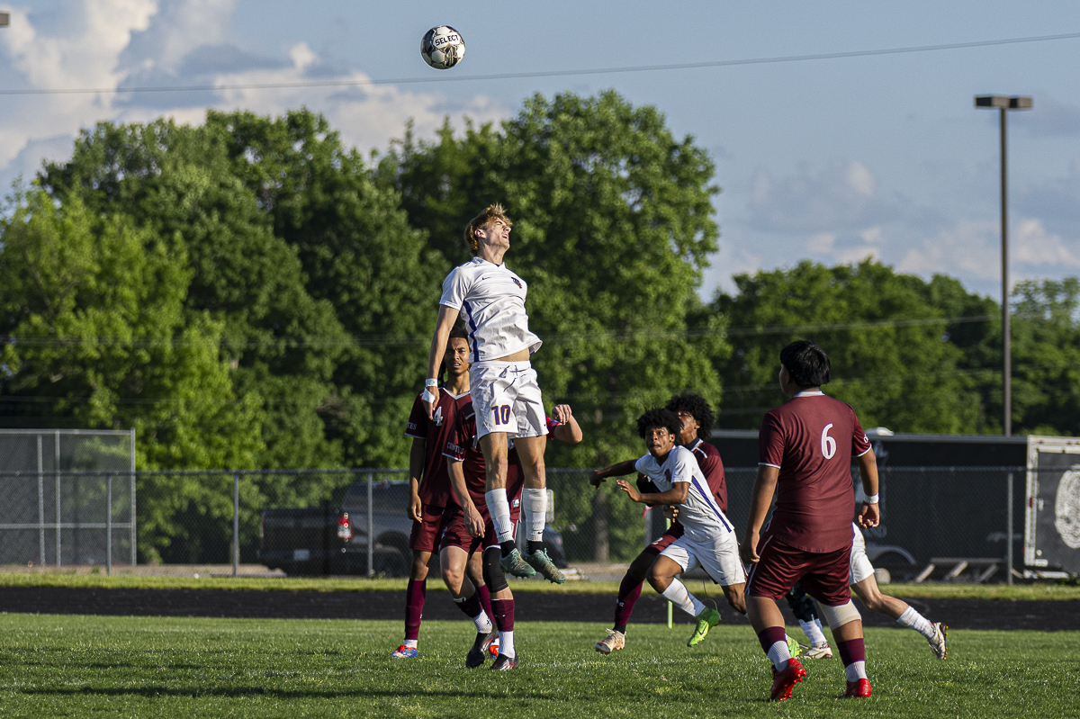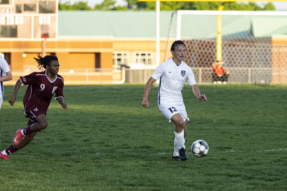 #3 Bryan Quijas-Crus of the Creek Coyotes takes ball control against the Clarksville High school Wildcats in the Regional Semifinals on May 13, 2025 (Jeff Danault)