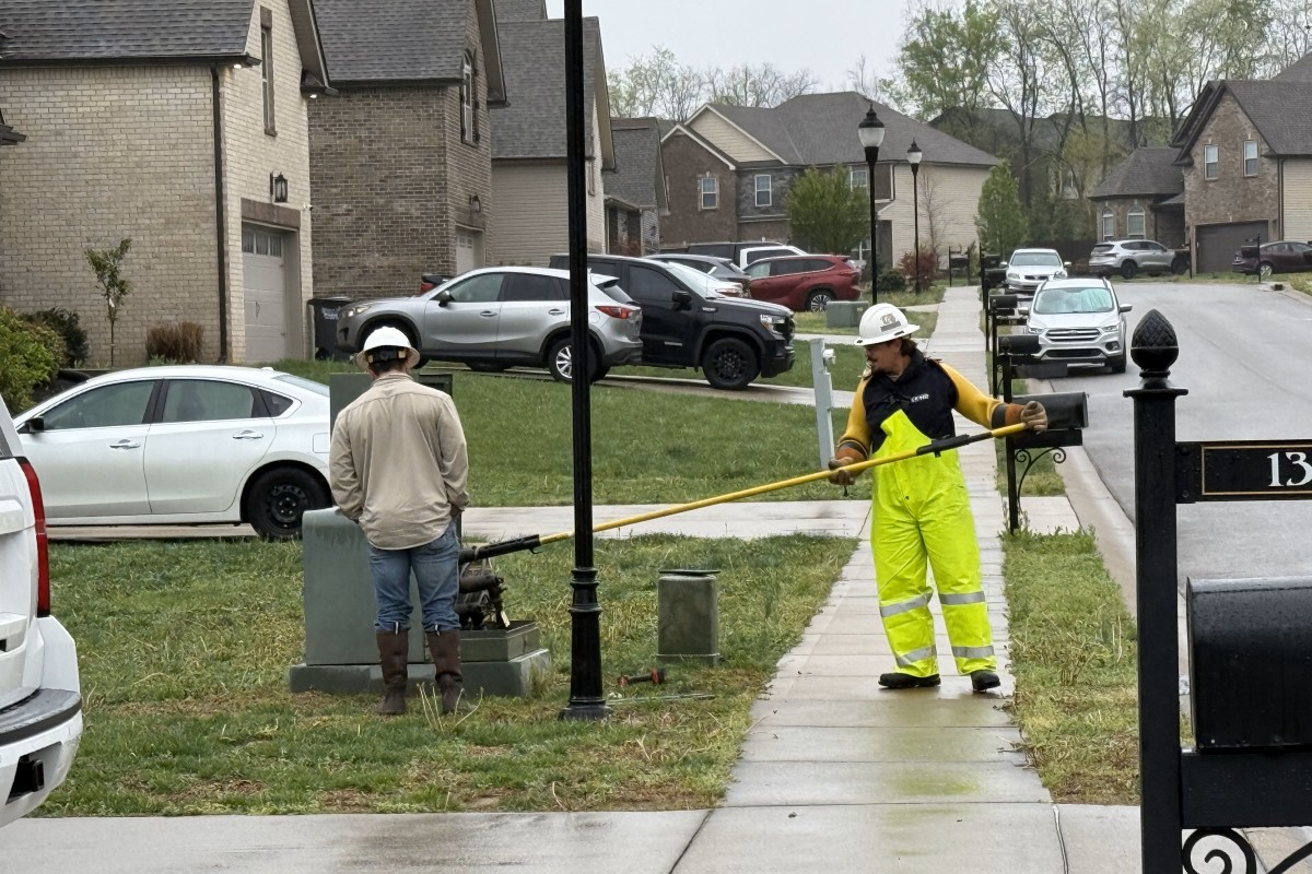 CEMC crews cut power to prevent hazards during Farmington subdivision flooding on April 6, 2025. (Michael Rios, Montgomery County Fire Service)