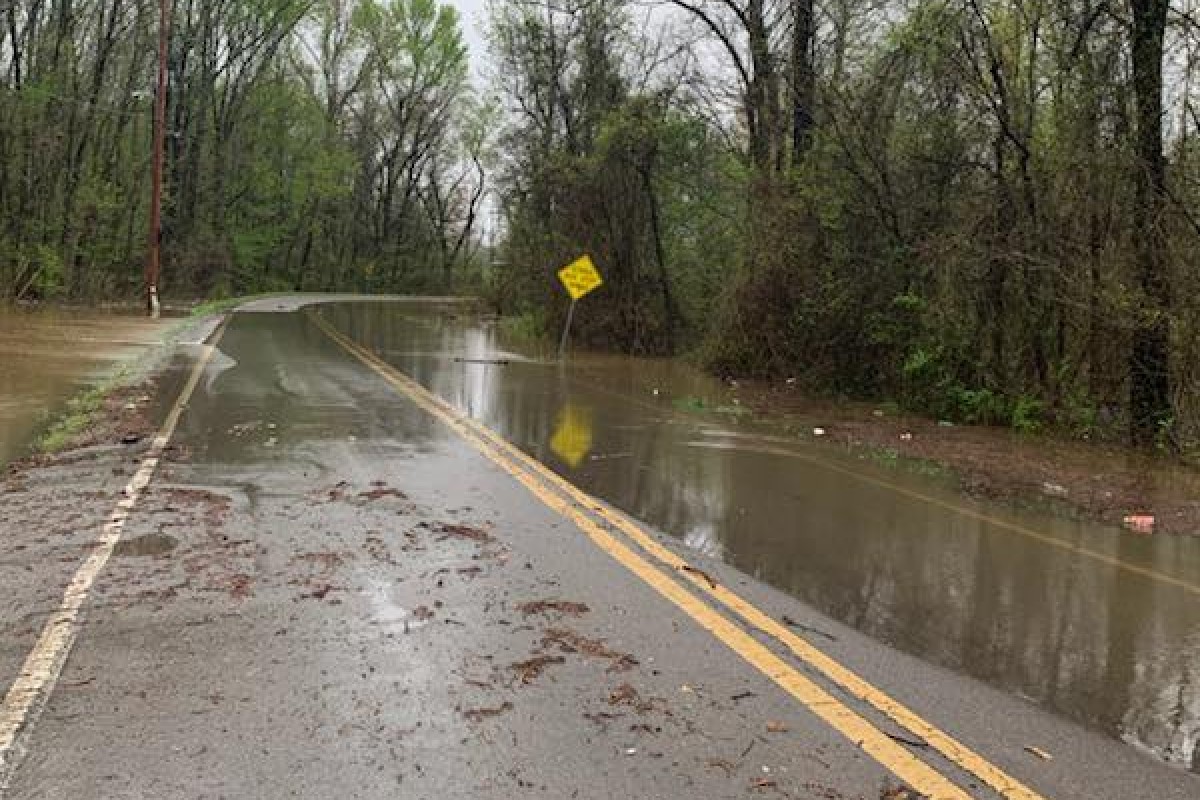 Flooding covers Dunbar Cave Road on April 6, 2025. (Chris Smith)