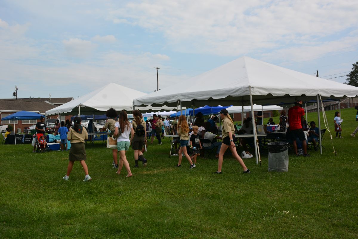 Members of Boy Scout Troop 21 of Clarksville at the Clarksville Housing Authority Back to School Bash at Summit Heights on Jul. 25, 2023. (Lee Erwin)