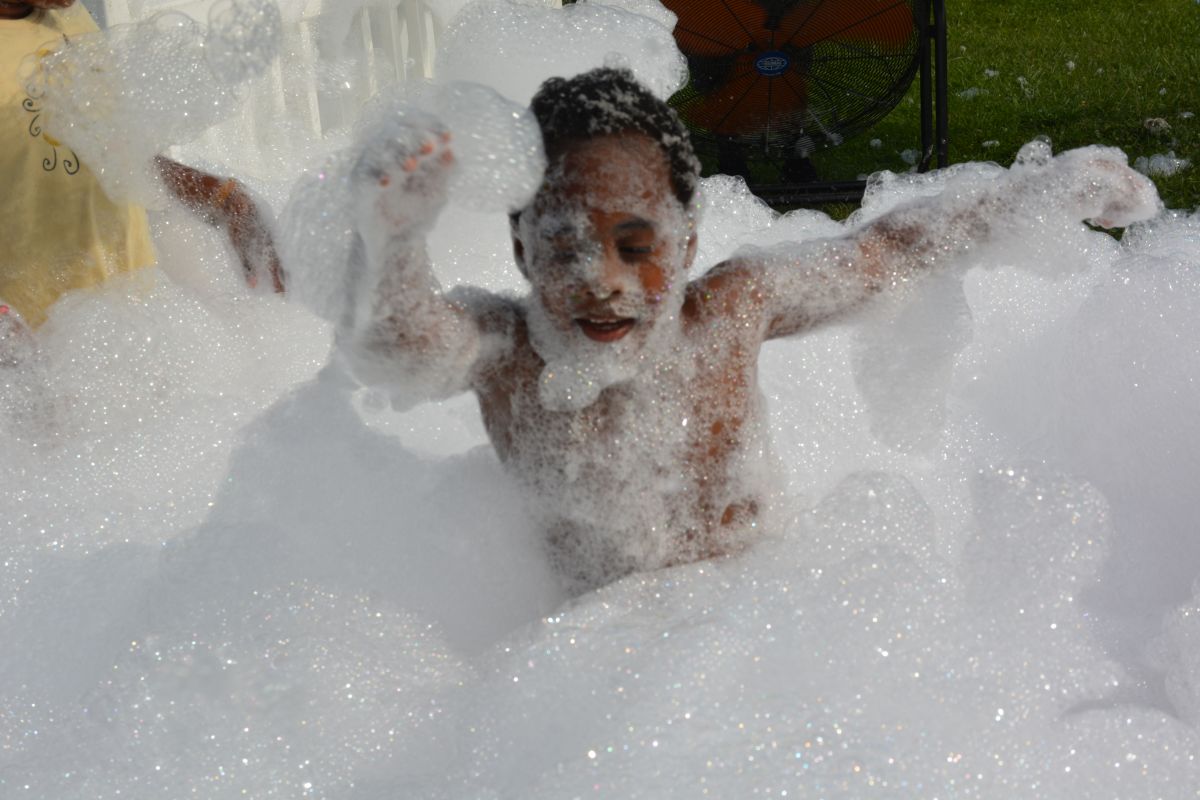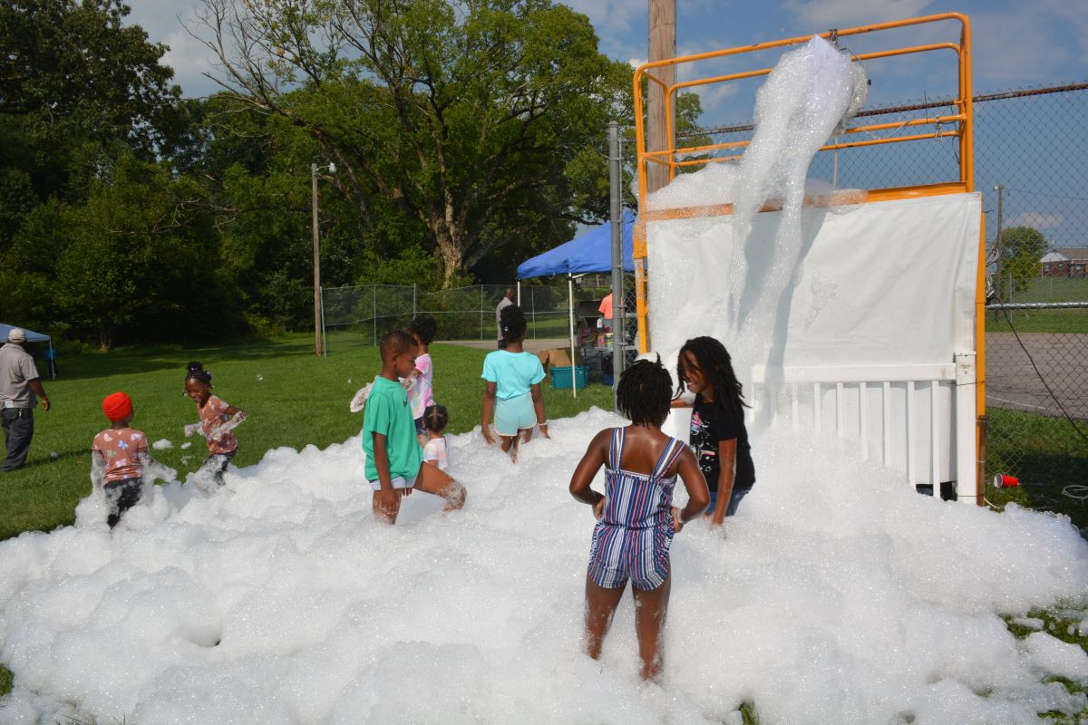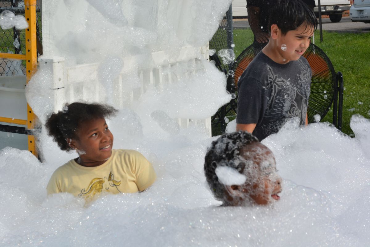 The event included more than 25 community resource organizations, including Clarksville-Montgomery County Schools. There was also food, music, books, games, prizes, educational activities and, most popular on a hot summer day, the foam machine.