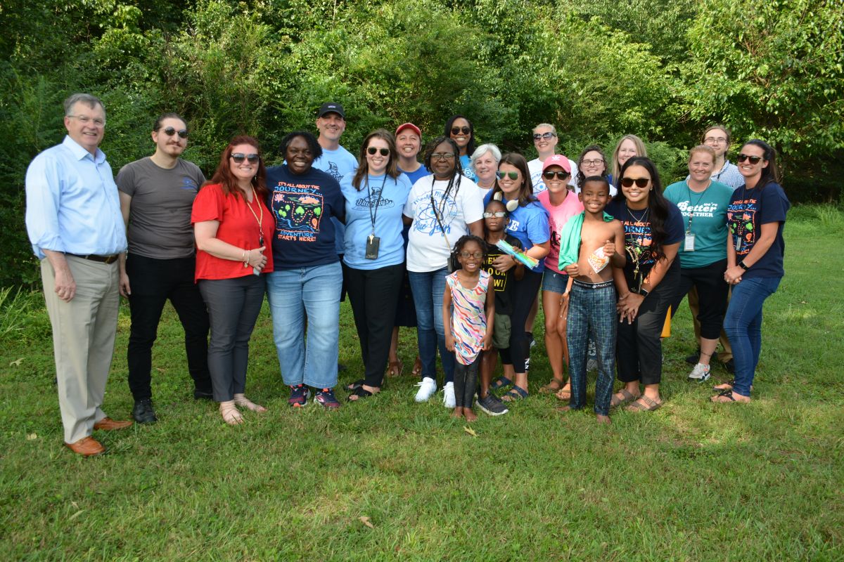 Montgomery County Commissioner Rashidah Leverett joins staff of the Clarksville Housing Authority at the Back to School Bash at Summit Heights on Jul. 25, 2023. (Lee Erwin)