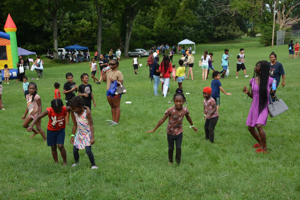 Kids playing at the Clarksville Housing Authority Back to School Bash at Summit Heights on Jul. 25, 2023. (Lee Erwin)