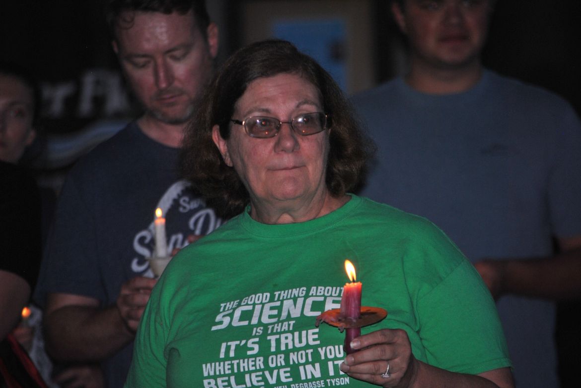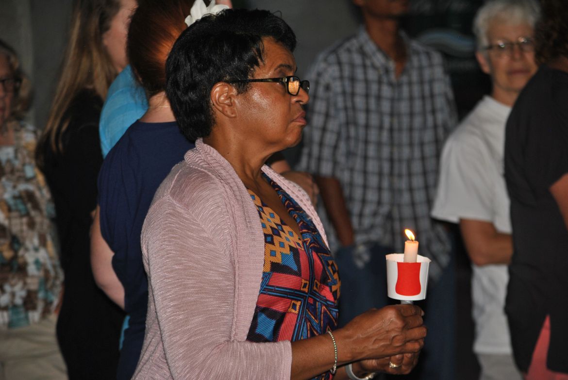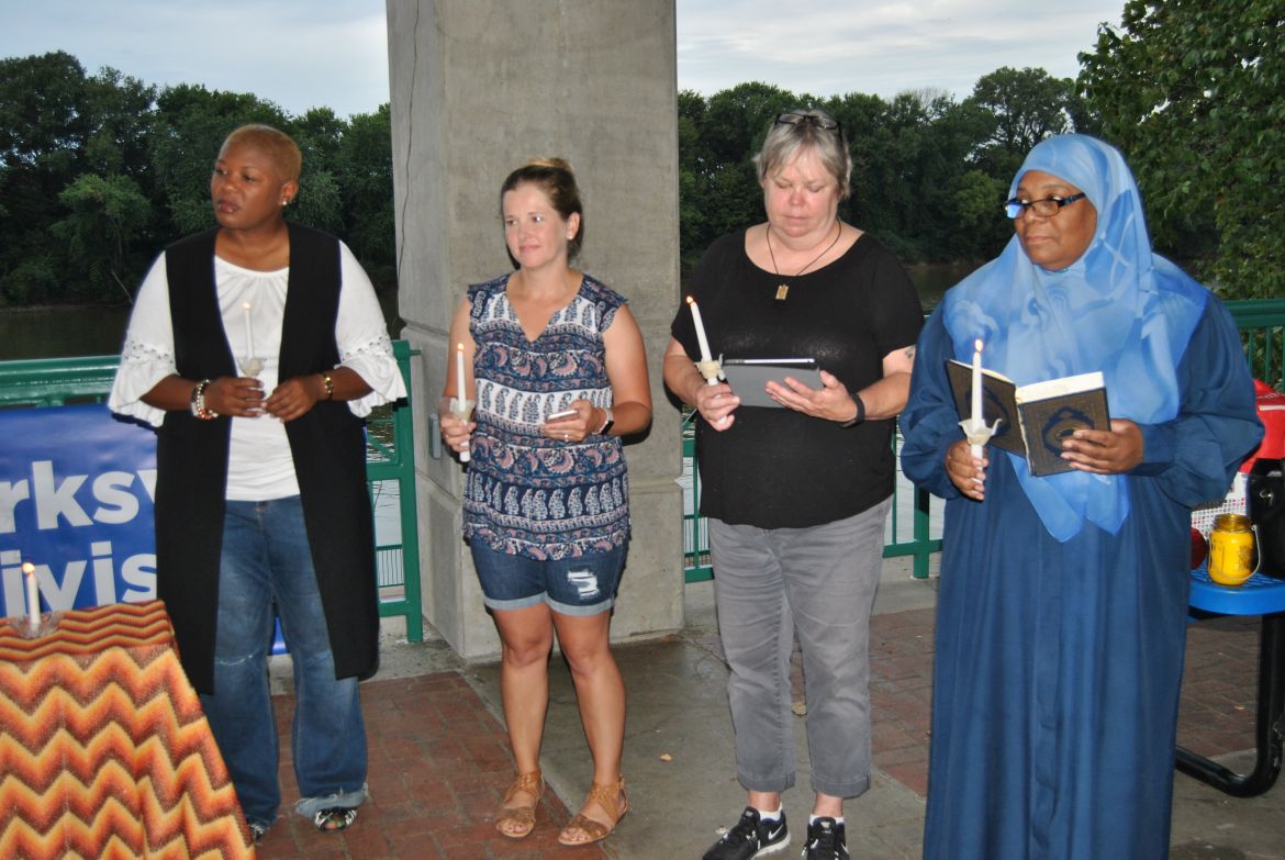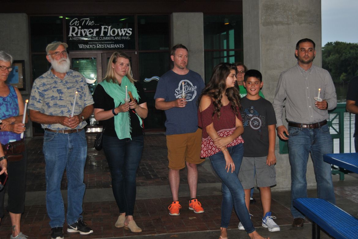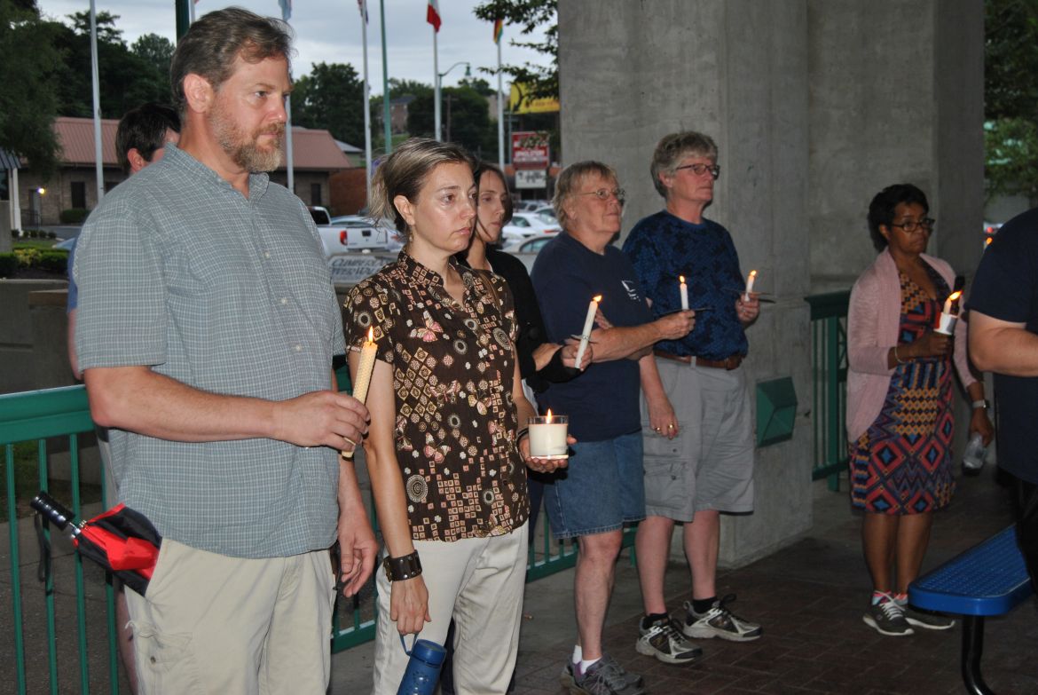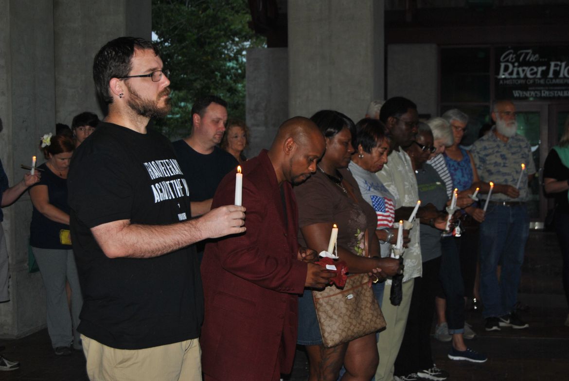CLARKSVILLE, Tenn. – (CLARKSVILLENOW) Over 50 people gathered at McGregor Park in Clarksville Sunday evening for a candlelight vigil organized by the group Clarksville Indivisible to show solidarity with Charlottesville, Virginia after violence against people protesting white nationalists. One person was killed and close to 30 people were injured after a car driven by an alleged Nazi sympathizer slammed into a crowd of counterprotestors.