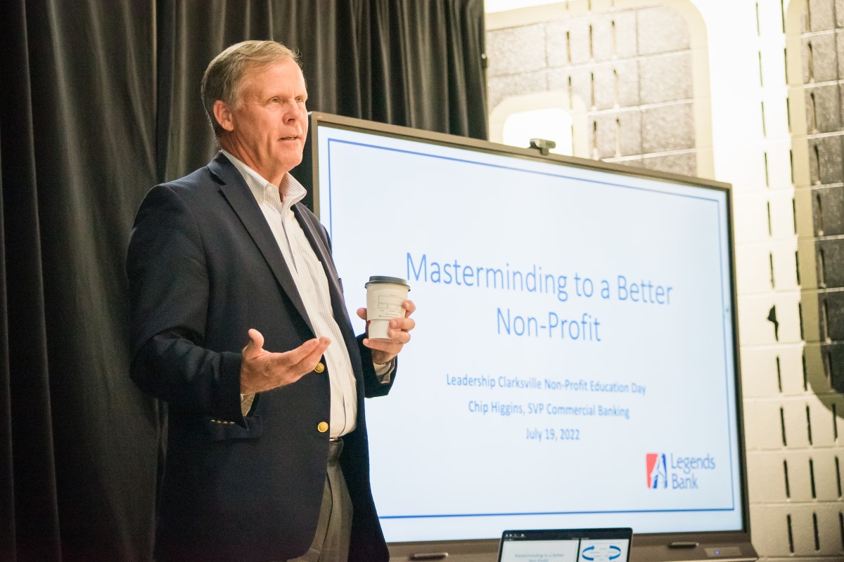 The event featured sessions on board governance and relationships by Ginna Holleman with Fortera Credit Union, nonprofit legality by Chip Higgins with Legends Bank, grant writing by Amanda Blount, and marketing your nonprofit by Chris Smith and Katie Gambill with Clarksville Now/5 Star Media Group.
