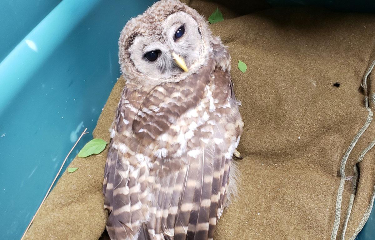 Capt Thornton was headed to work Thursday morning when he came across an injured owl on Salem Road. It was sitting in the middle of the road and unable to fly.