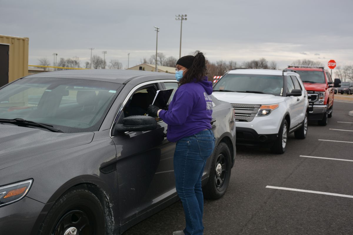 Along with healthcare workers and providers, Clarksville Police Chief David Crockarell, Clarksville Fire Rescue Chief Freddie Montgomery, and Montgomery County Volunteer Fire Service Deputy Chief Randy Steeley drove through to get the vaccine.