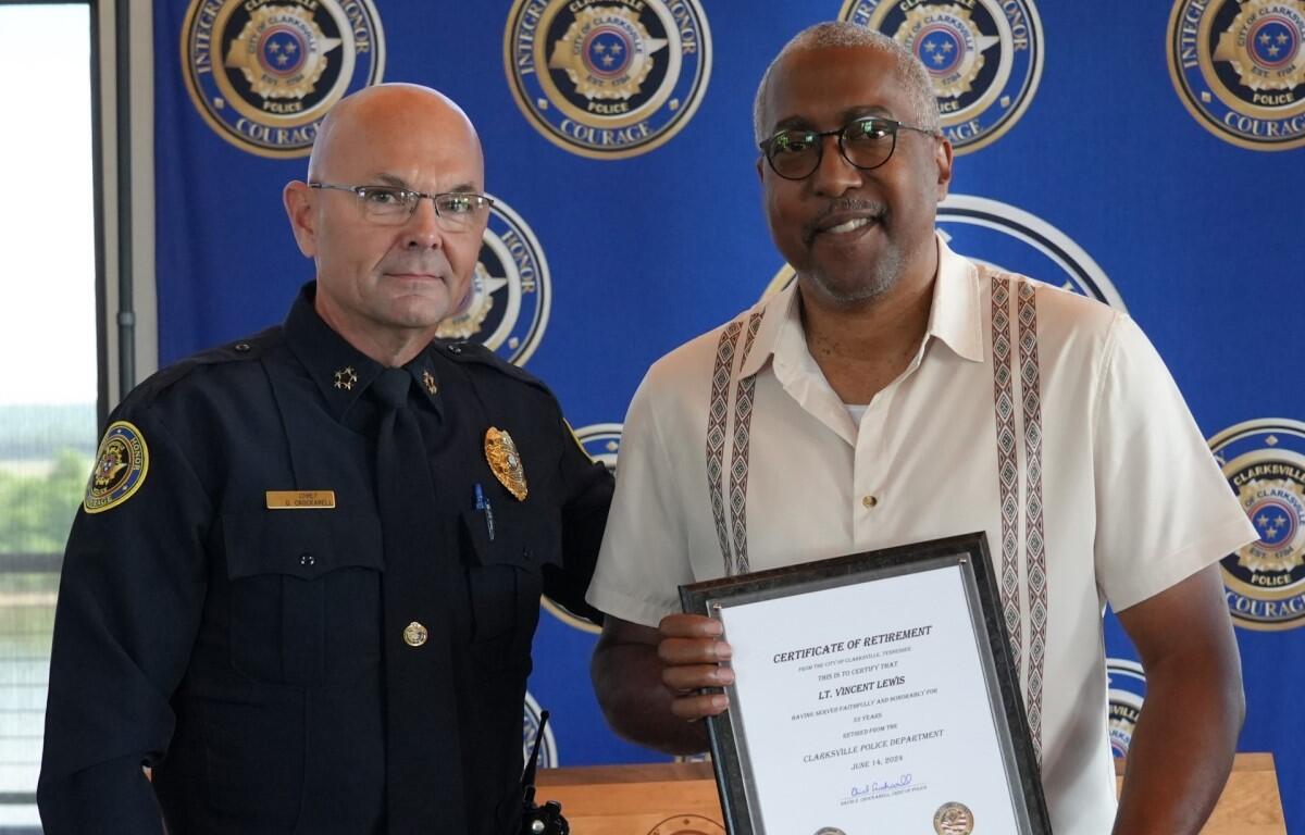 Lt. Vince Lewis has been with the Clarksville Police Department for 33 years. He joined CPD in January of 1991 and has held several different positions within the department. From Patrol Officer to Street Crimes Gang Officer, Agent, Detective, and Public Information Officer until his promotion to Sergeant in May 2006. He served as a patrol supervisor until February 2015, when he transferred to the Special Operations Homicide Unit as the supervisor of the unit. In December 2015, Sgt. Lewis was promoted to Lieutenant and became the Traffic Unit Supervisor where he has served until his retirement which is effective today, June 14, 2024.