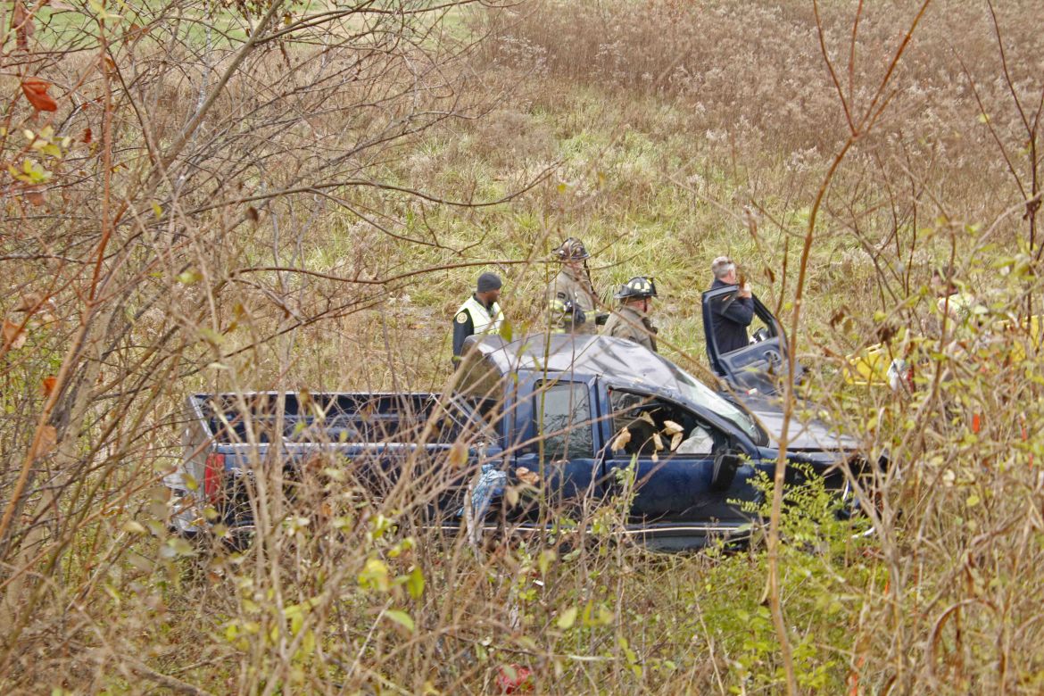 The truck rolled over several times before landing upright at the bottom of the embankment.
