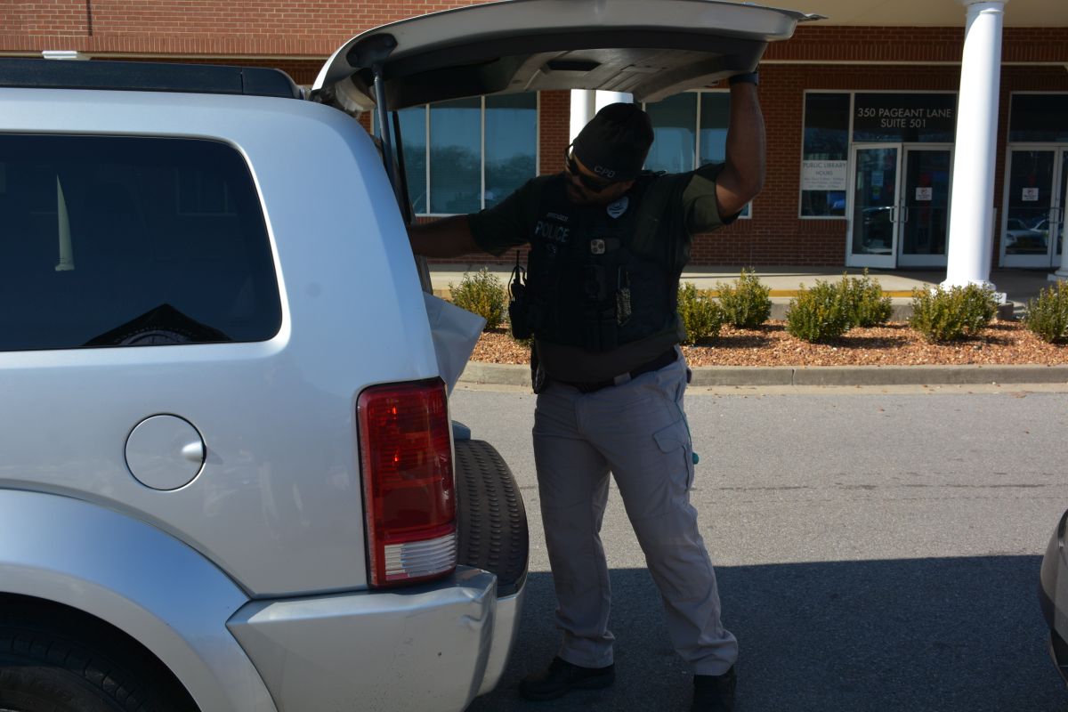 Officer MarShun Cox, a Juvenile Engagement Team officer with the police department, said the event at the library was like a food pantry or a food drive for the community.
