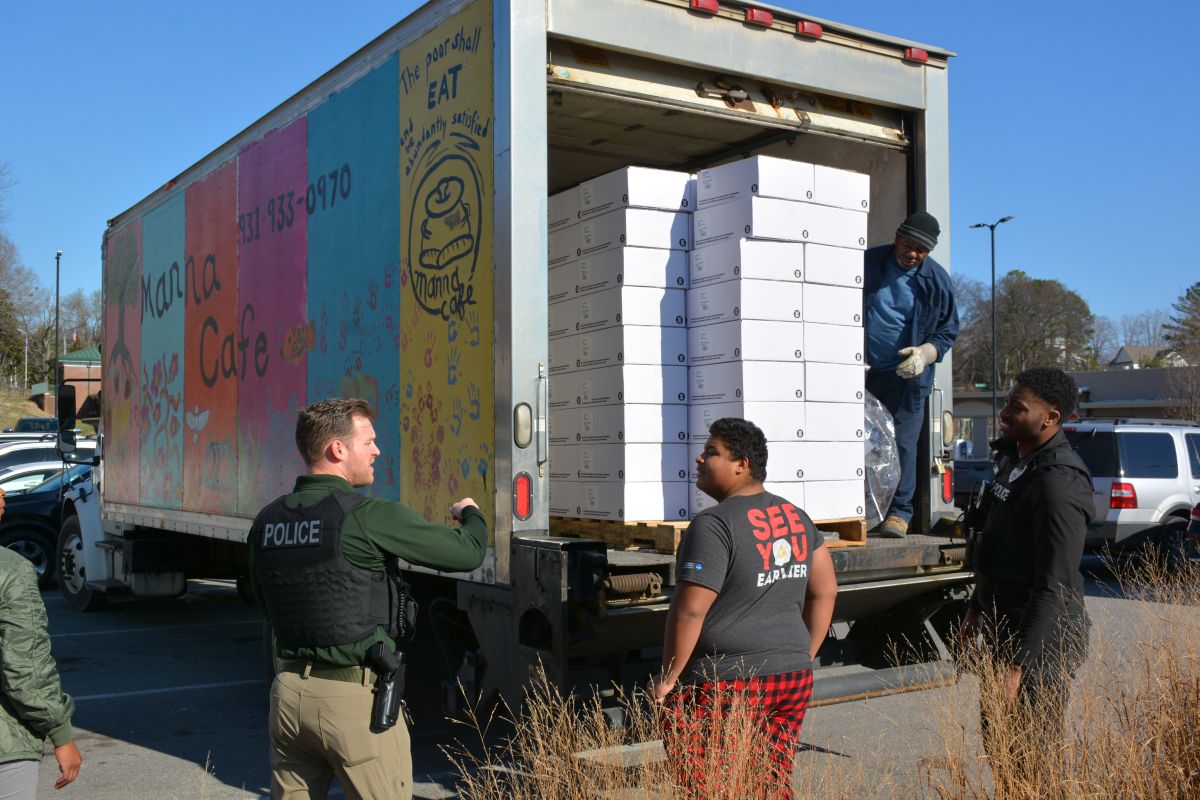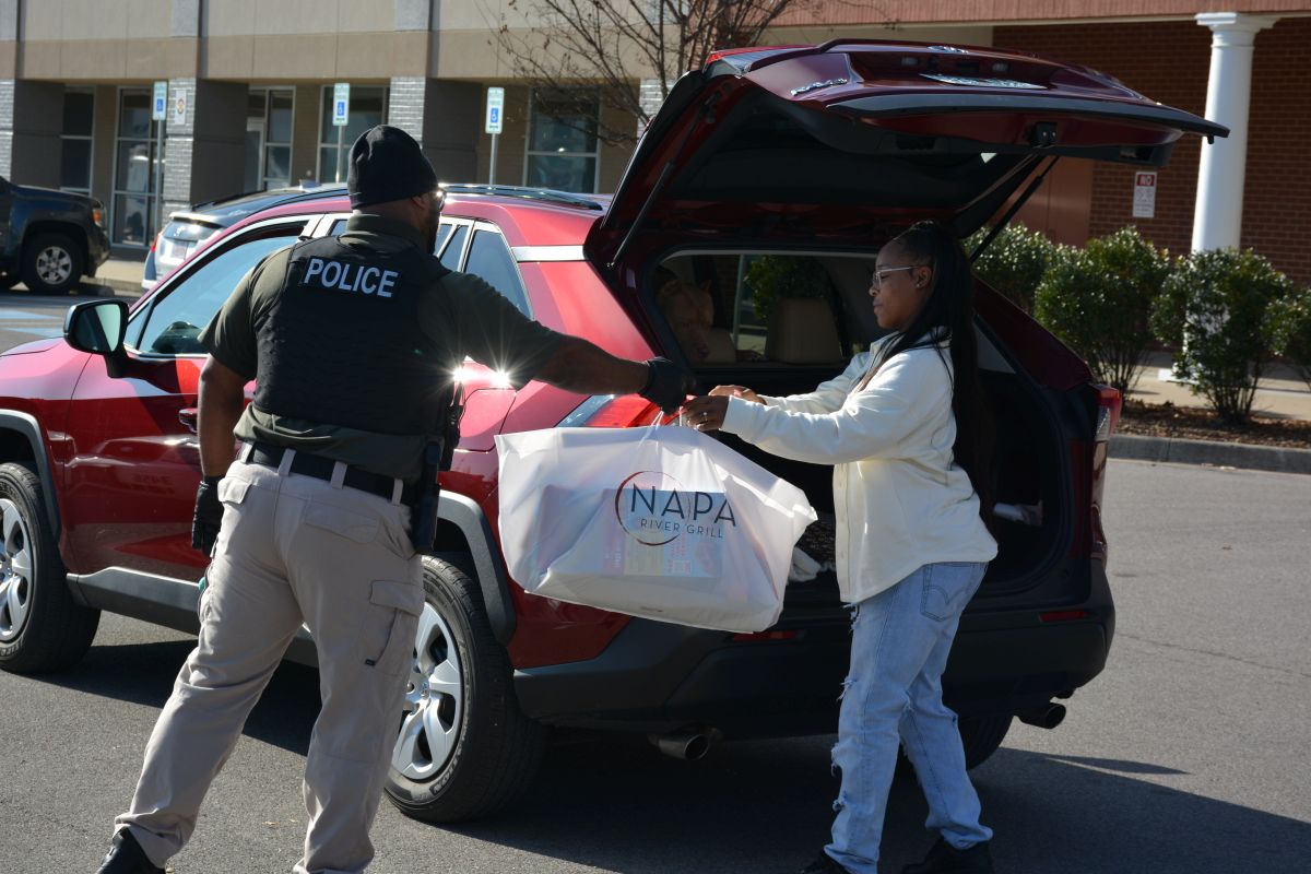 CLARKSVILLE, TN (CLARKSVILLE NOW) – The Clarksville Police Department’s Juvenile Engagement Team (J.E.T.) joined forces with local nonprofit organizations on Tuesday to provide food along with some holiday cheer for Clarksville citizens.