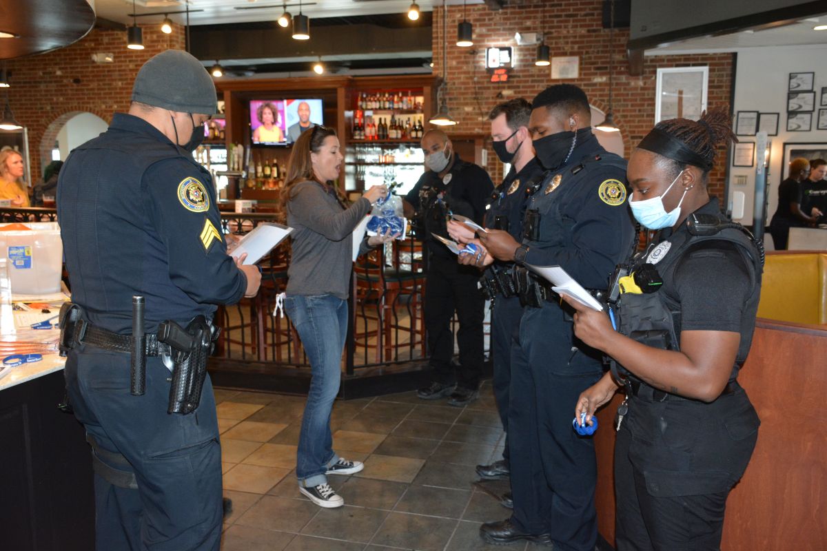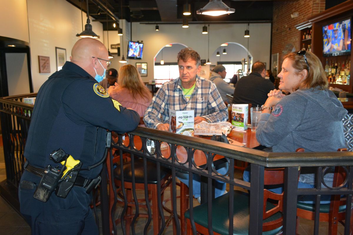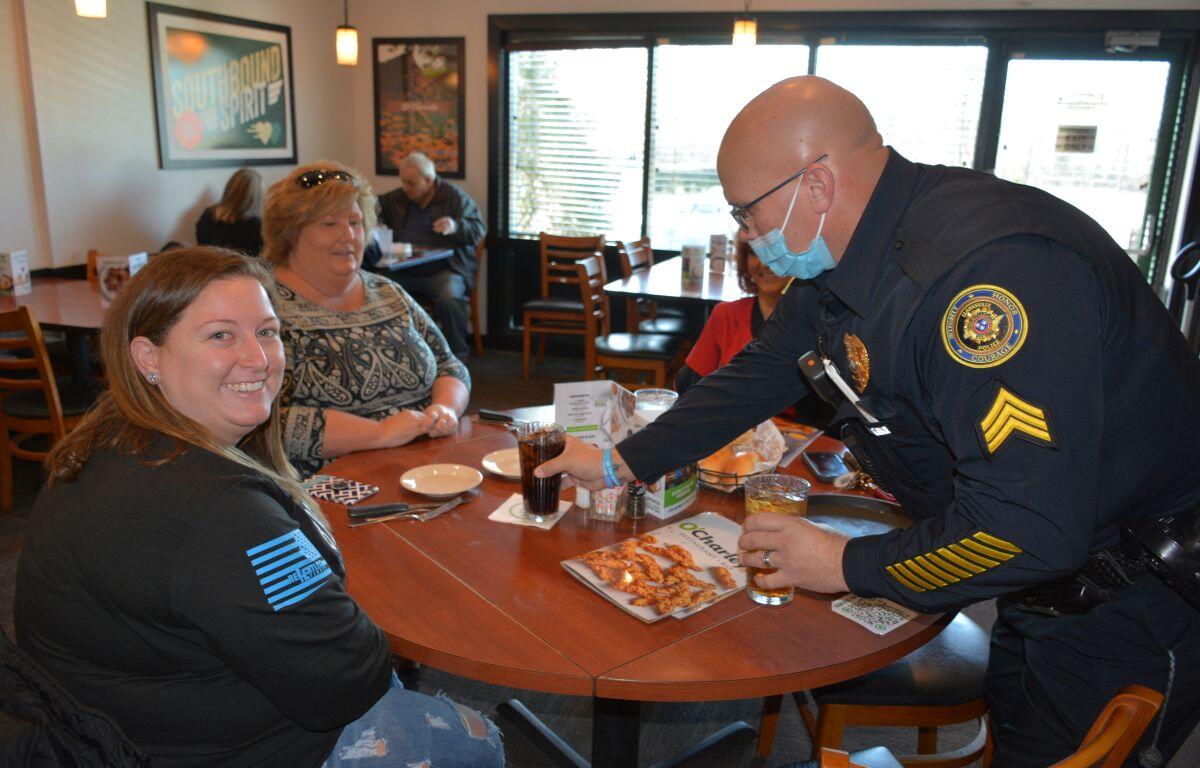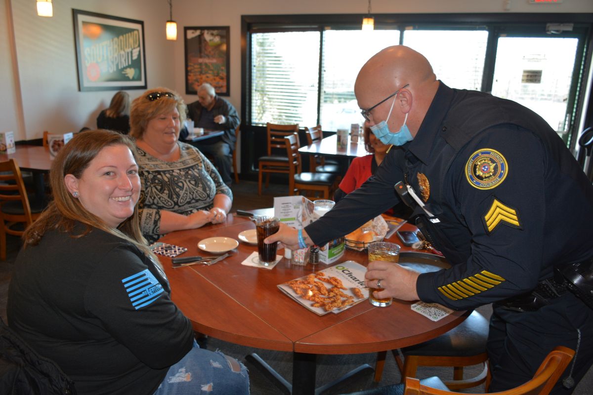 Clarksville Police Officers serve patrons at O’ Charley’s on Riverside Dr. as part of the Tip-A-Cop fundraiser for Special Olympics Tennessee, on Jan. 12, 2022. (Lee Erwin)