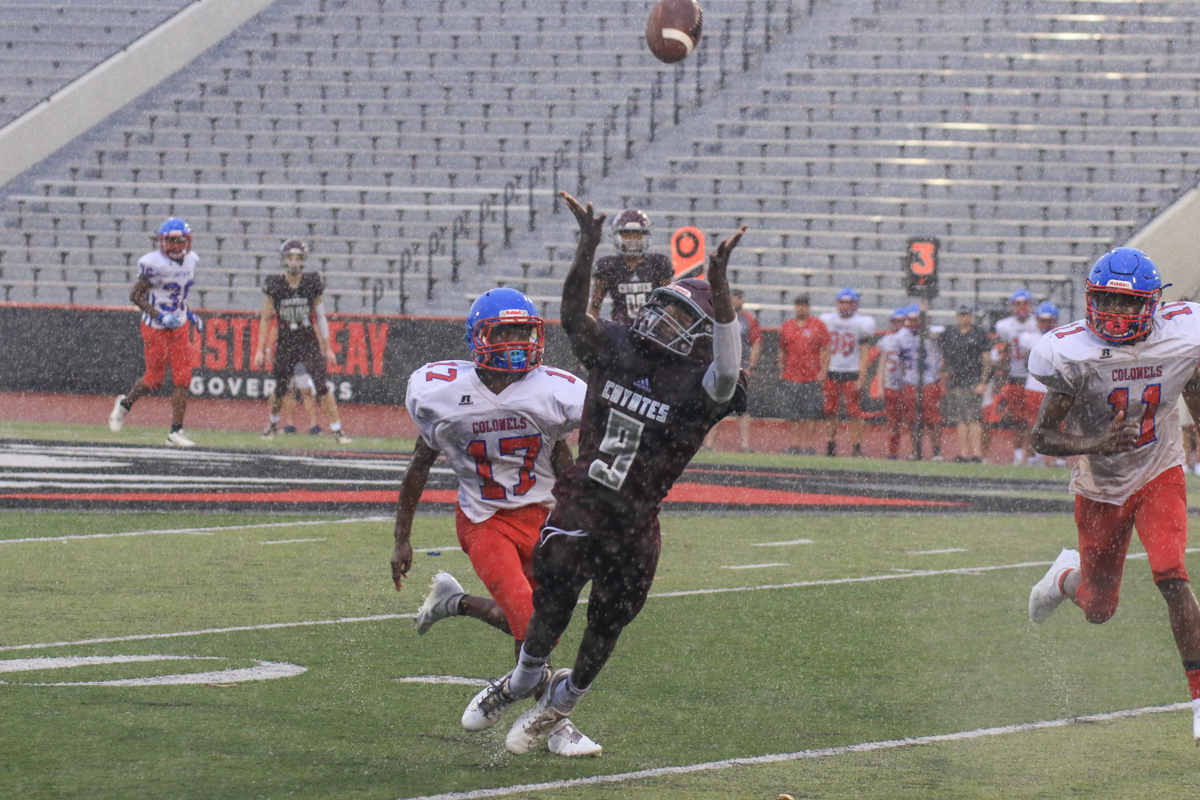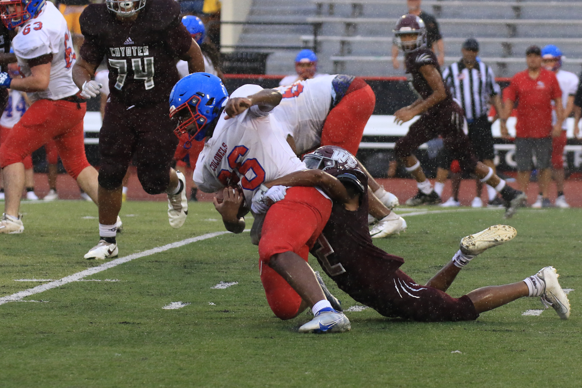 Freshman running back Jaisaun Ousley takes it 31 yards for the touchdown. Coyote quarterback @KaydenPace2’s pass attempt then somehow ends up in the hands of his intended receiver for the successful 2-point conversion. @Westcreek_FB holds on to defeat the Colonels 8-7. pic.twitter.com/3y4OeplhzC