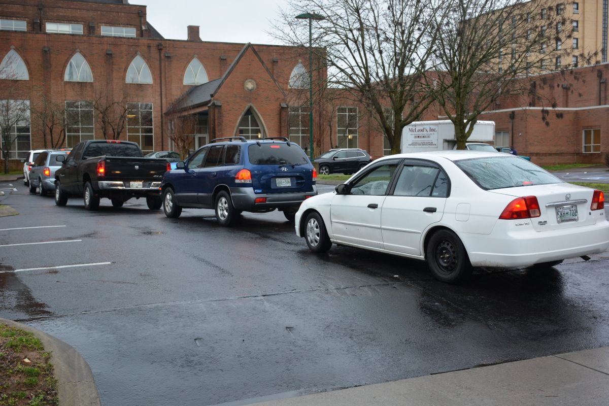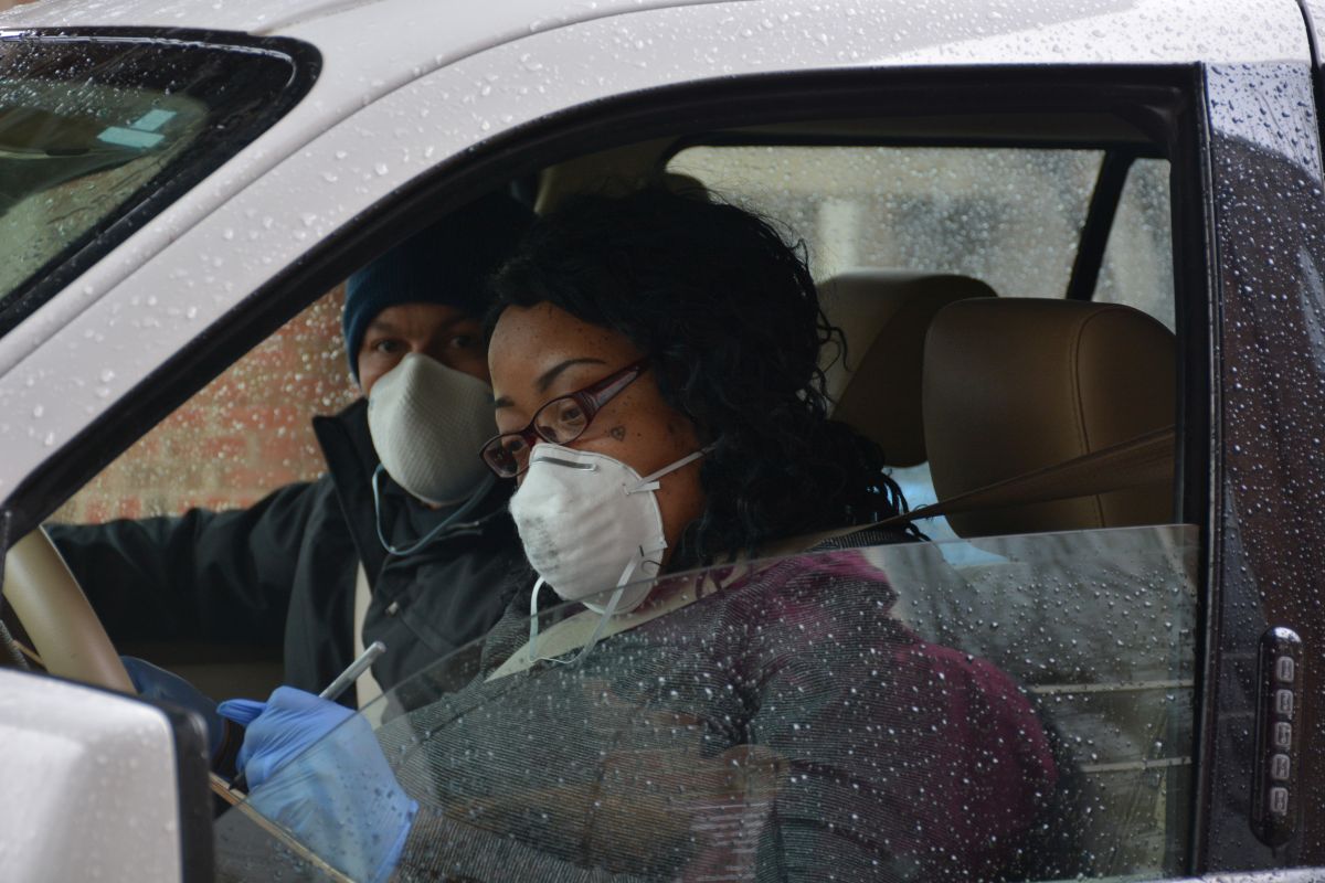 The drive-thru was set up so those seeking help would not have to leave their vehicles to receive food.