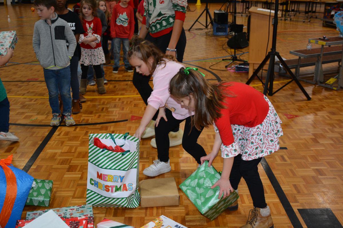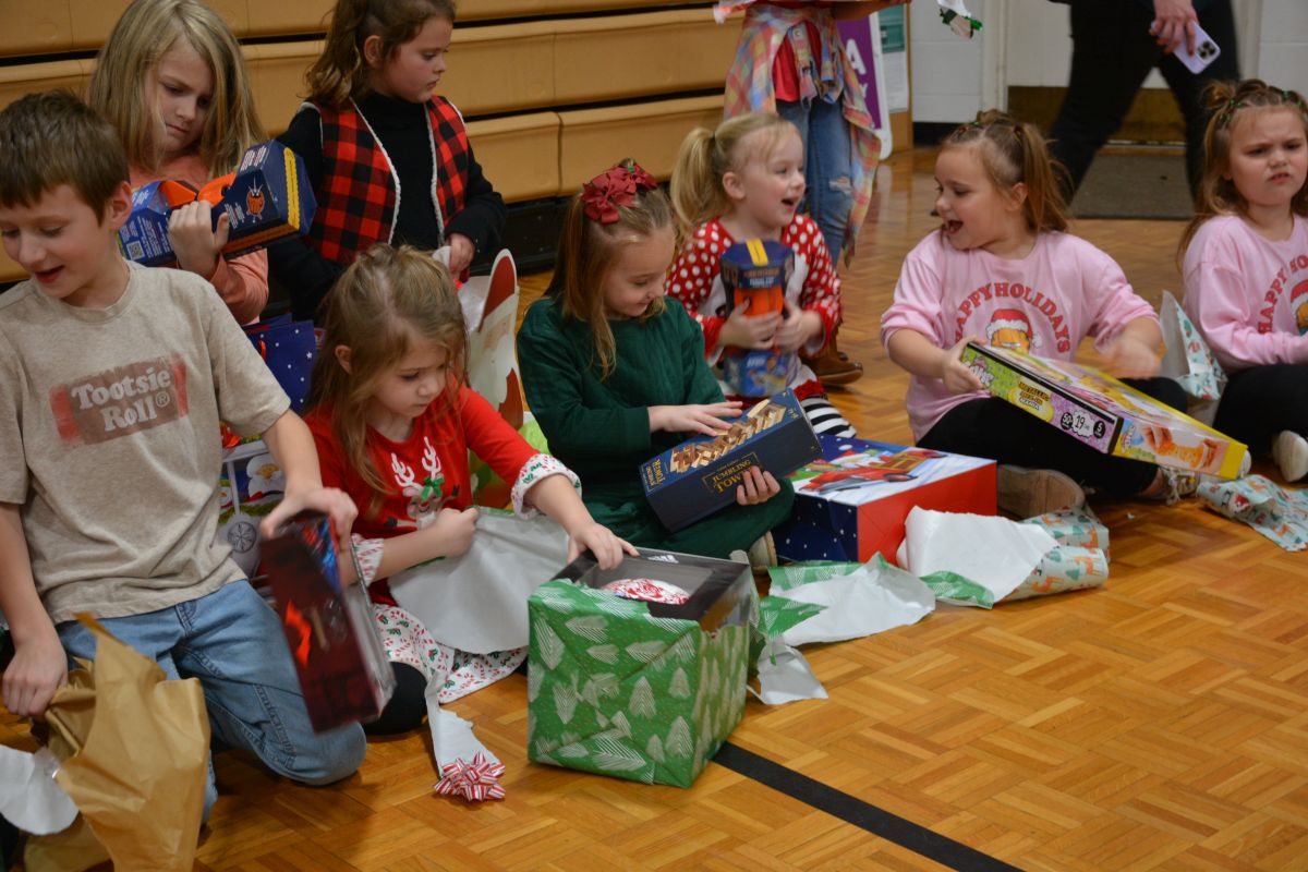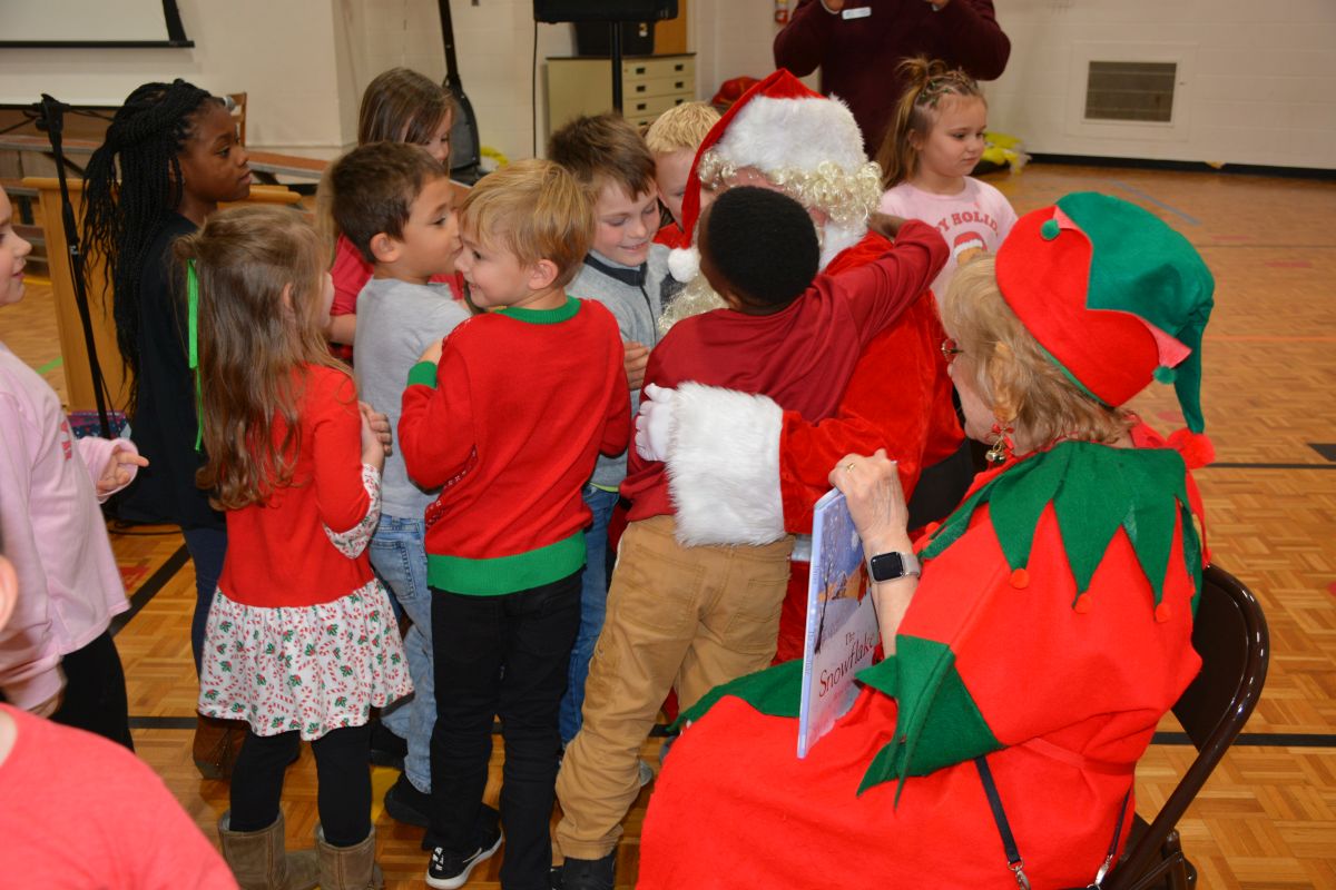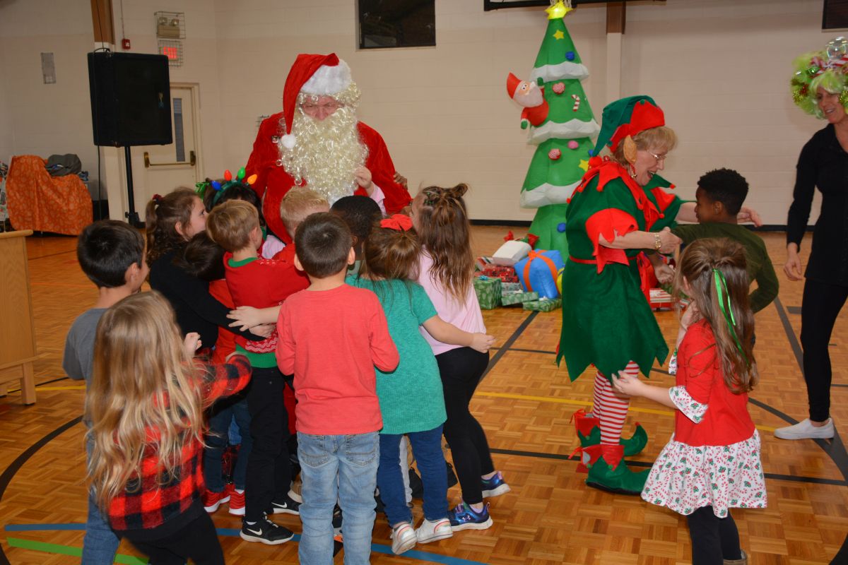 St. Bethlehem Elementary School students with the YMCA child-care program celebrate Christmas with a surprise party.