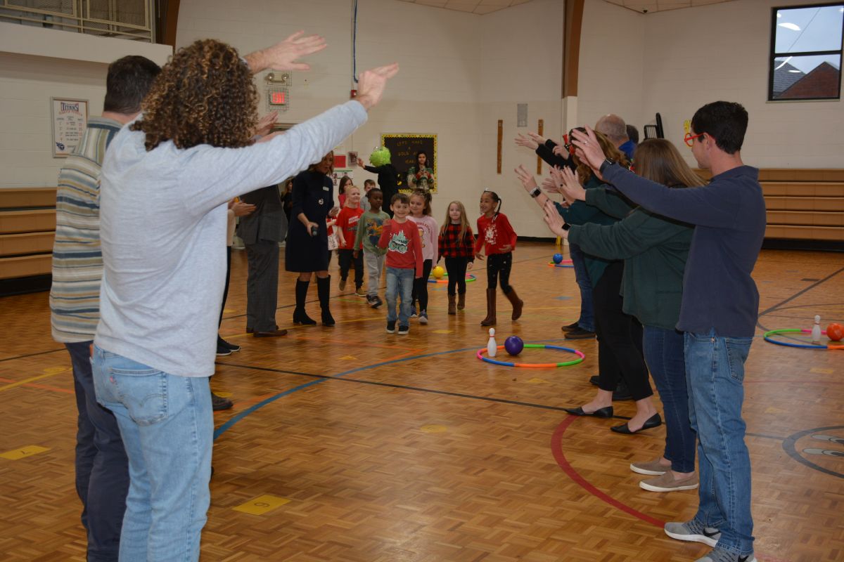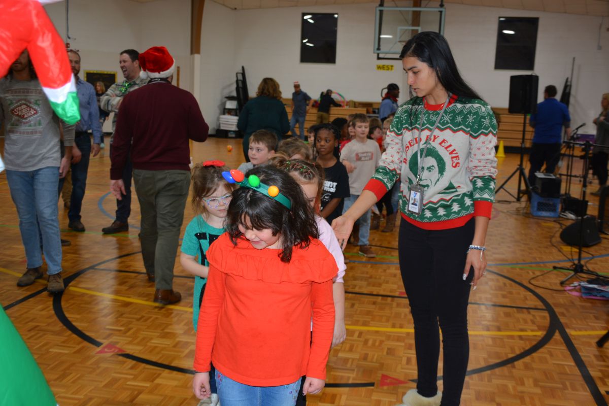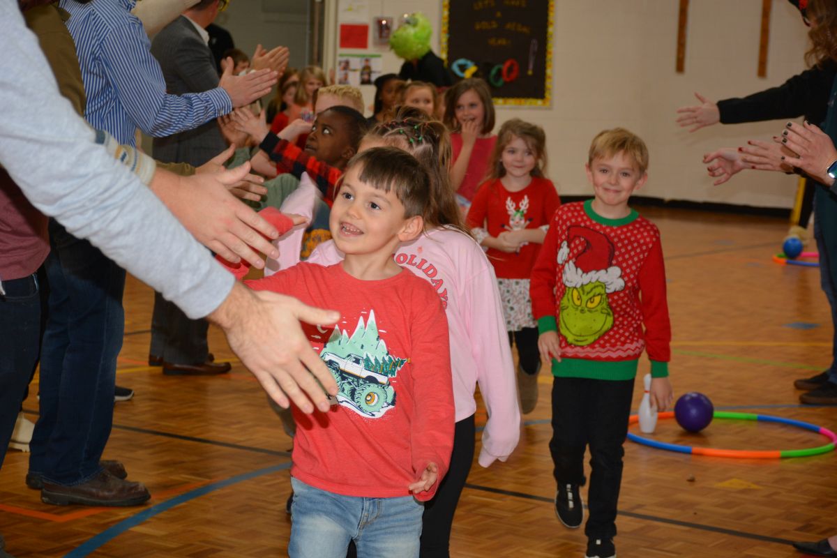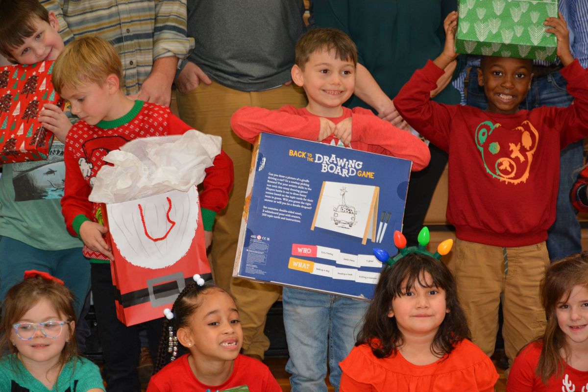 St. Bethlehem Elementary School students with the YMCA child-care program celebrate Christmas with a surprise party.