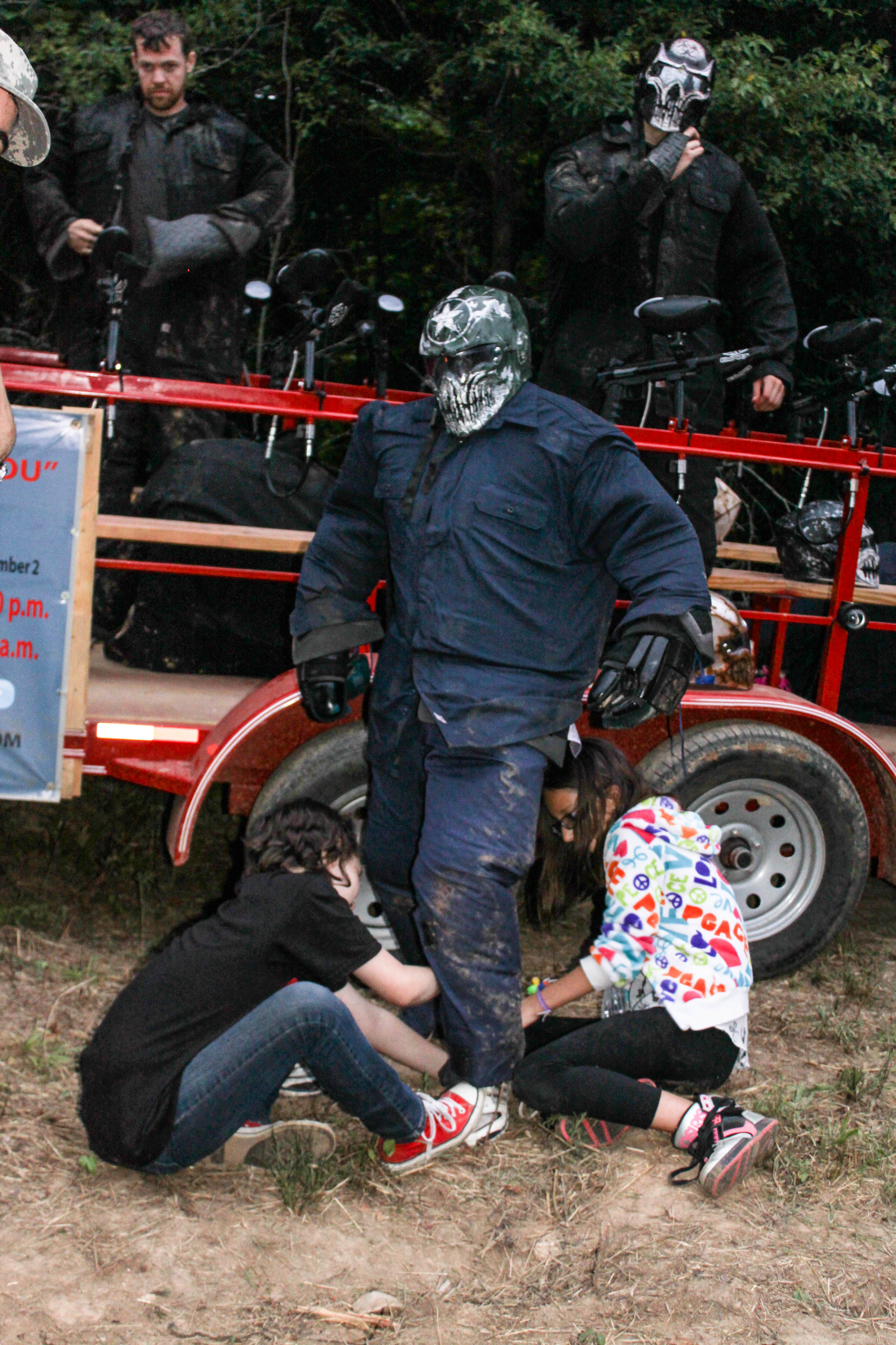 Some volunteers will put on protective gear and act like zombies, while other duties might include filling paint tubes for the hay ride, directing traffic, working at a ticket booth or picking up trash. Some individuals are also hired to help with the event.