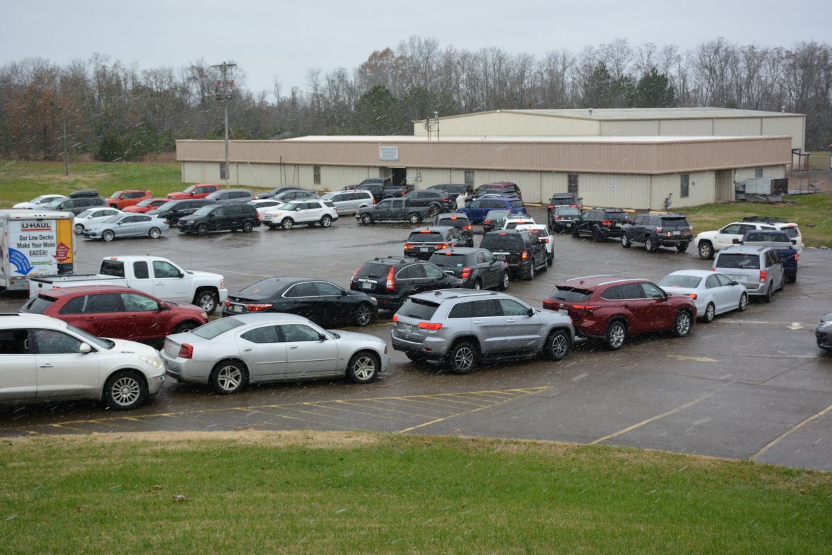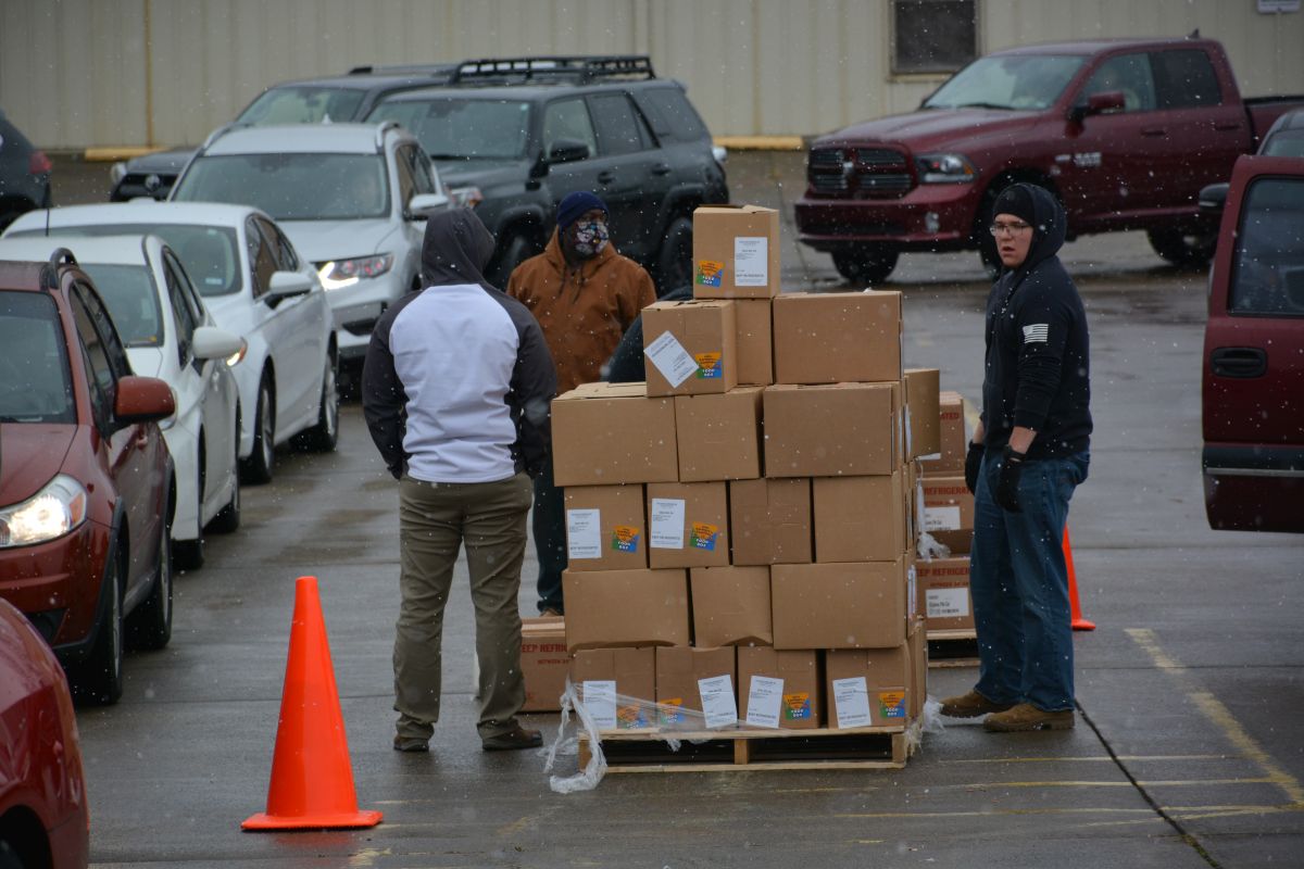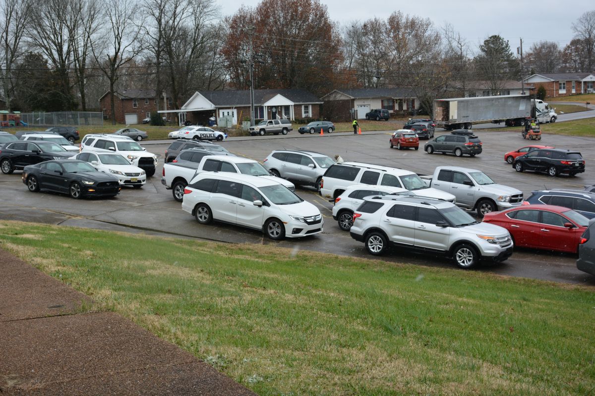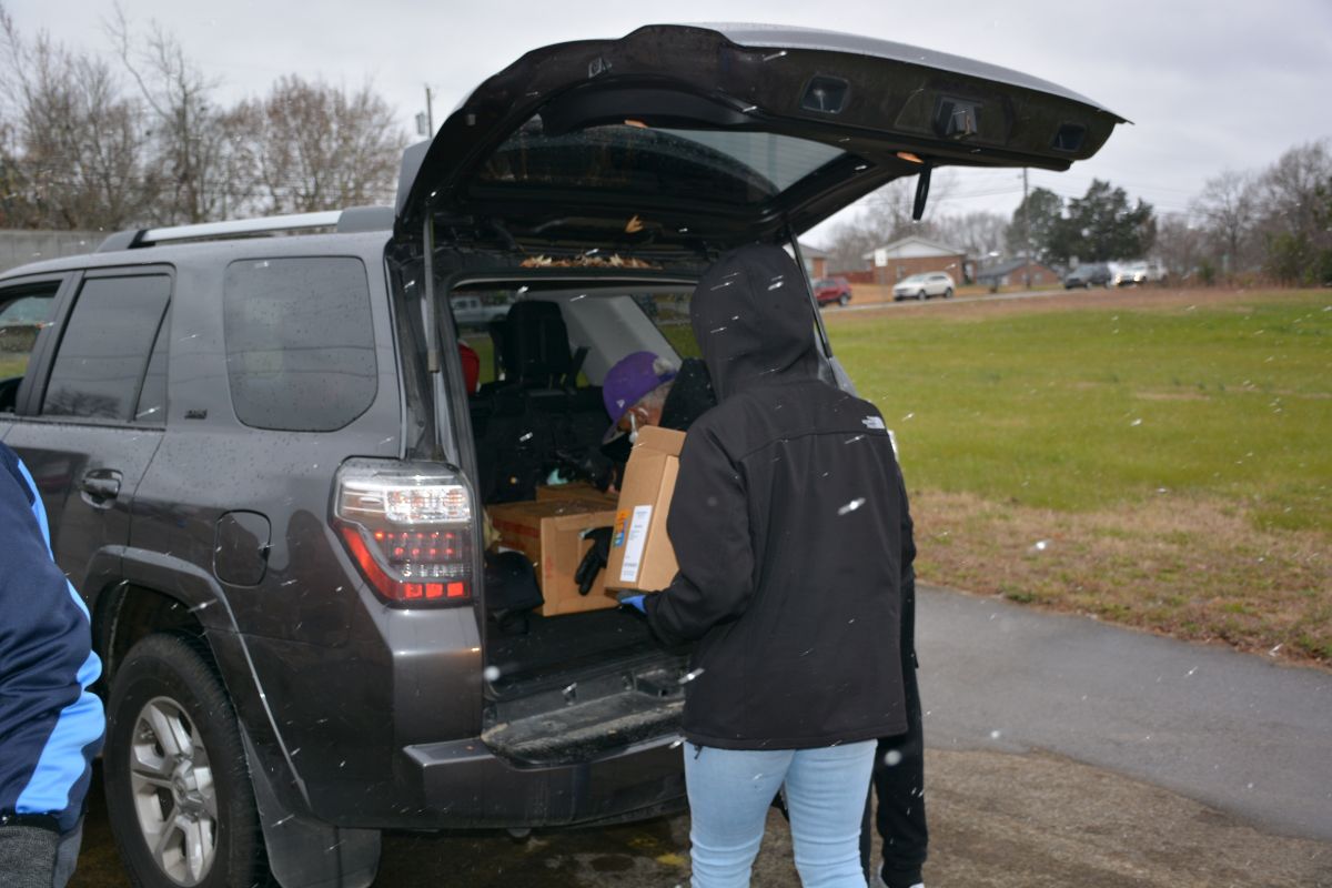 CLARKSVILLE, Tenn. (CLARKSVILLENOW) – Volunteers braved a cold, windy and snowy Monday as two organizations, Fort Care and TW Family Affair Outreach, teamed up to honor and give military families and veterans free boxes of food in a drive-thru event called the Honor Package Grocery Giveaway.