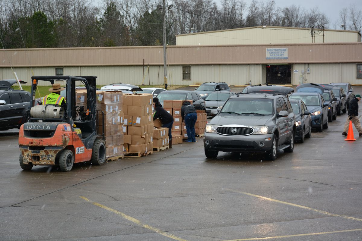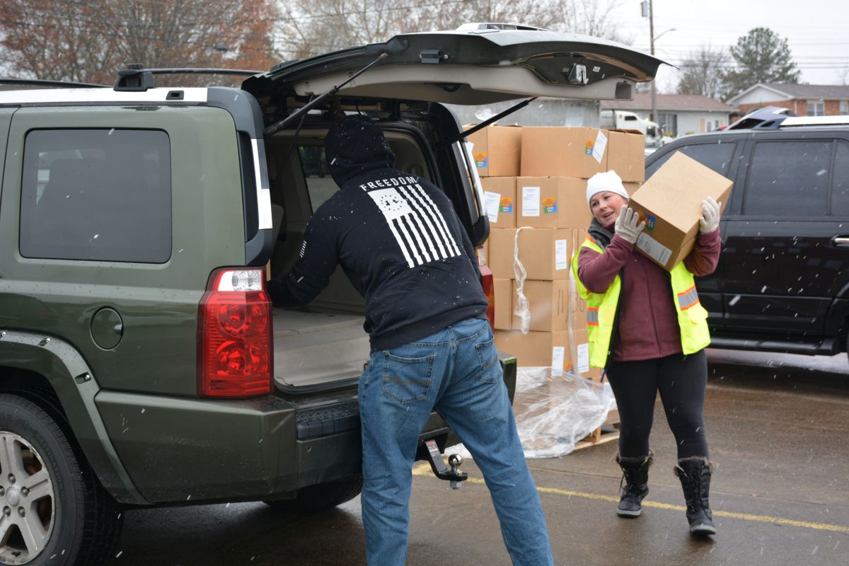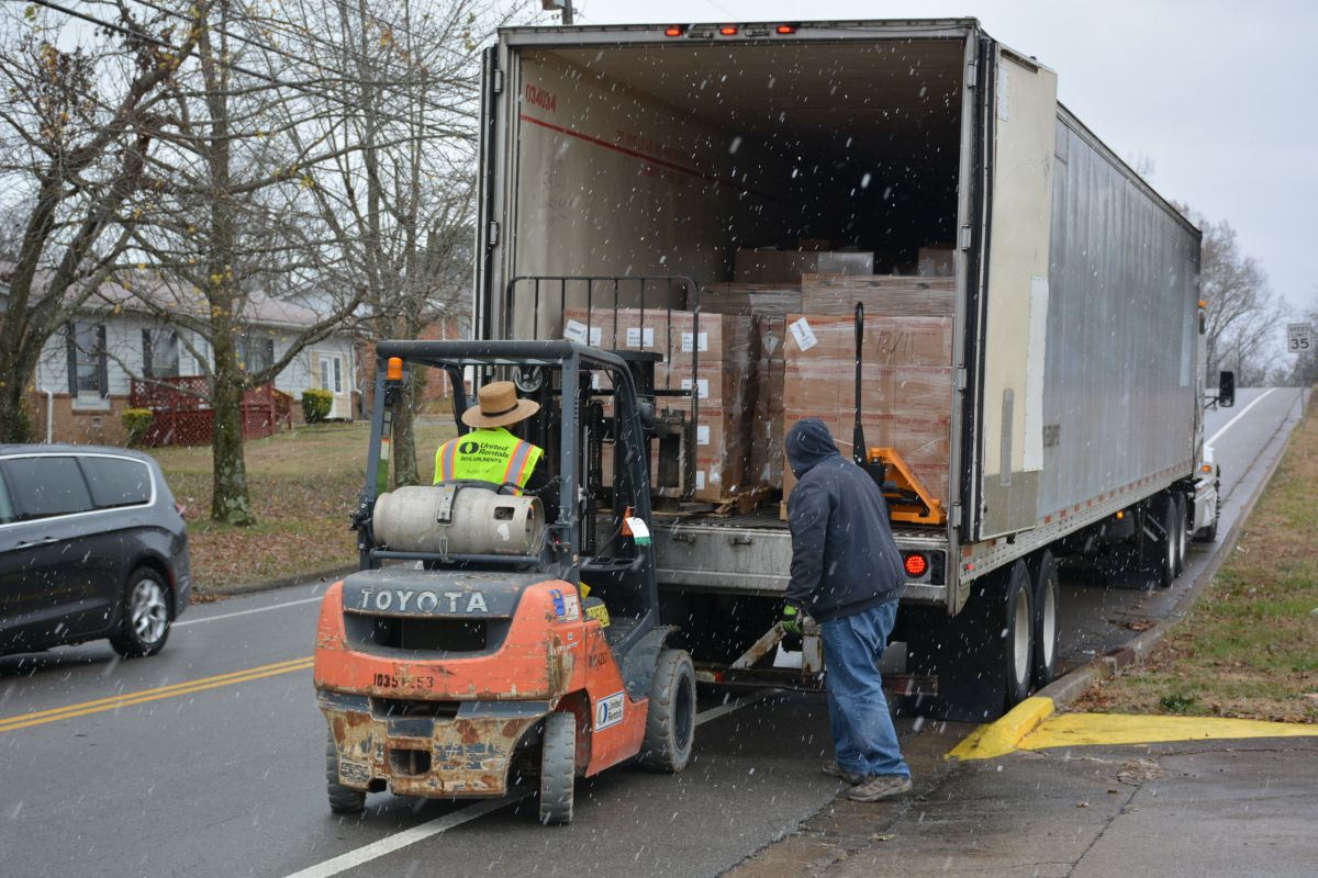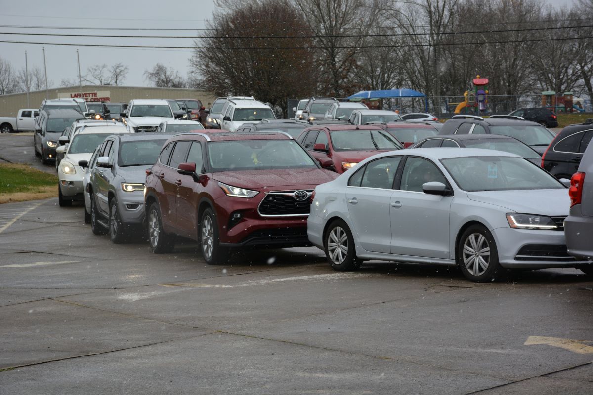 CLARKSVILLE, Tenn. (CLARKSVILLENOW) – Volunteers braved a cold, windy and snowy Monday as two organizations, Fort Care and TW Family Affair Outreach, teamed up to honor and give military families and veterans free boxes of food in a drive-thru event called the Honor Package Grocery Giveaway.