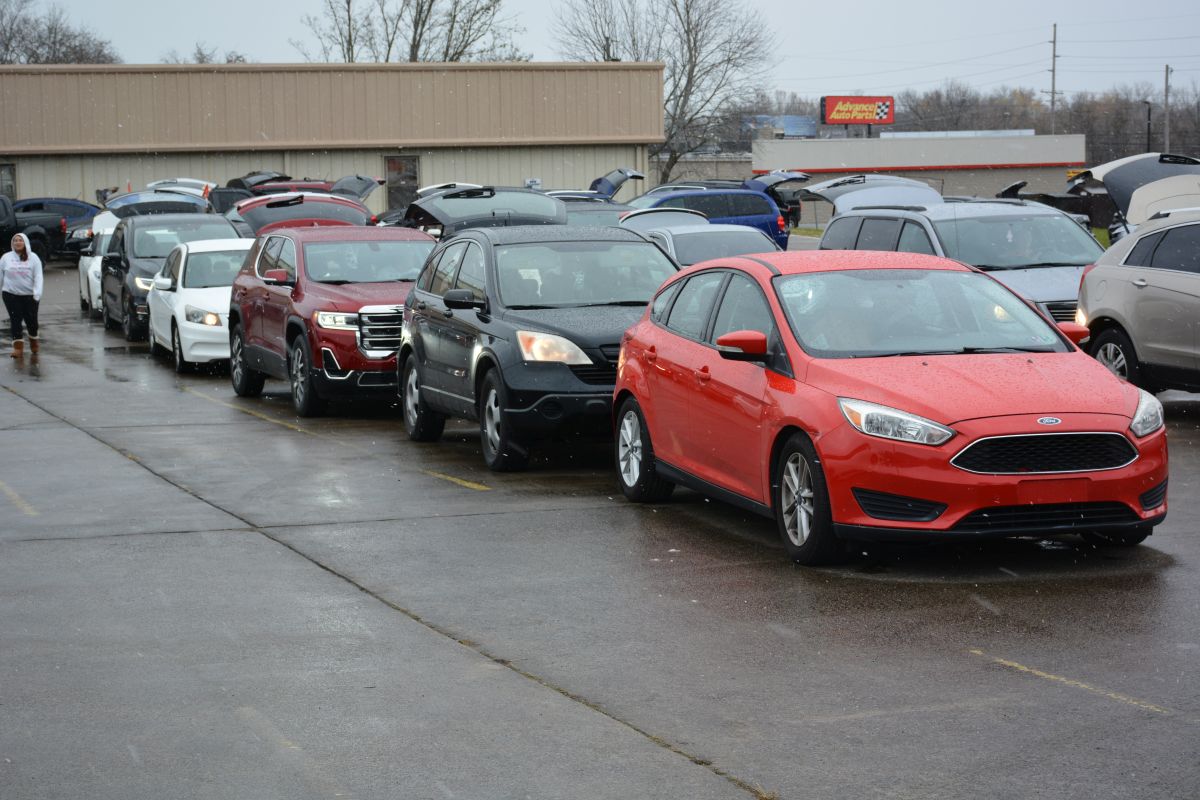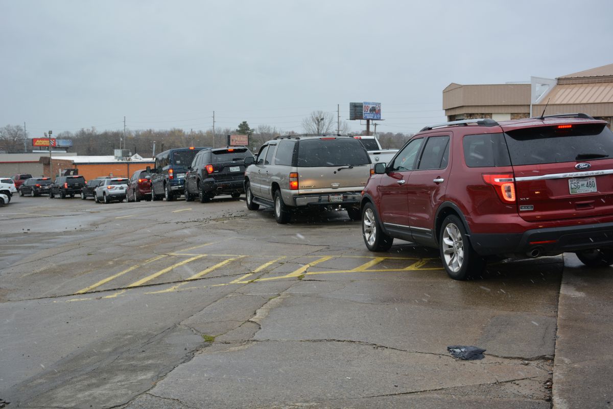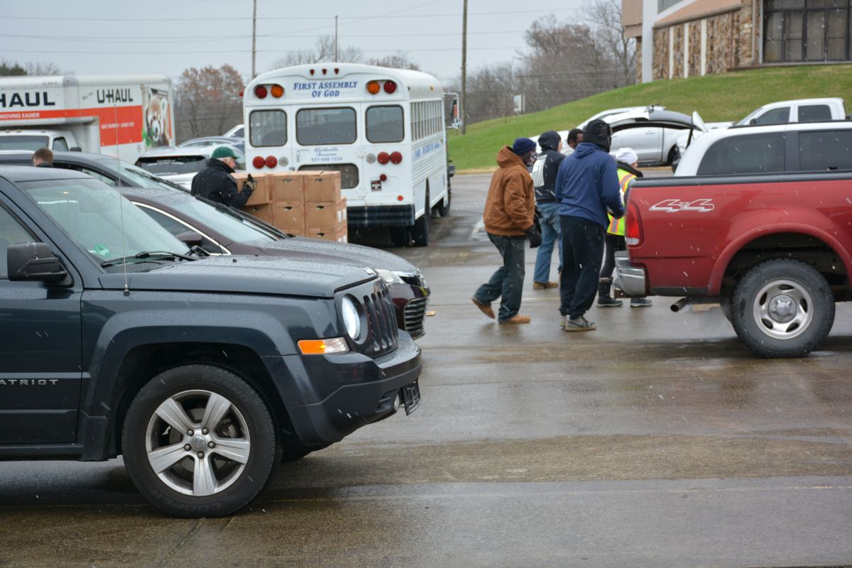 Hundreds of vehicles lined the parking lot of First Assembly of God Church as 2,800 Honor Boxes of Food benefitting close to 1,300 military families and veterans were handed out after being unloaded from two semi-trucks. This was the fourth such free food event in the area.