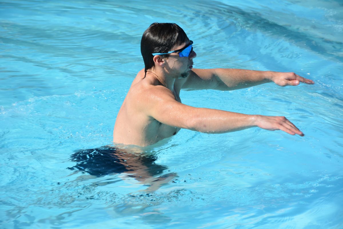 Bill Persinger, with Austin Peay State University in the water at the APSU Foy pool, on Feb. 5, 2022. (Lee Erwin).