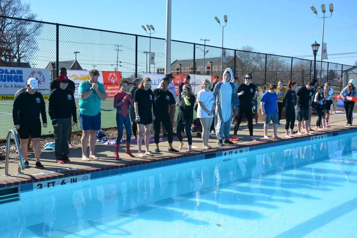 Participants get ready to jump in the water at the Special Olympics Tennessee Polar Plunge at the APSU Foy pool, on Feb. 5, 2022. (Lee Erwin).