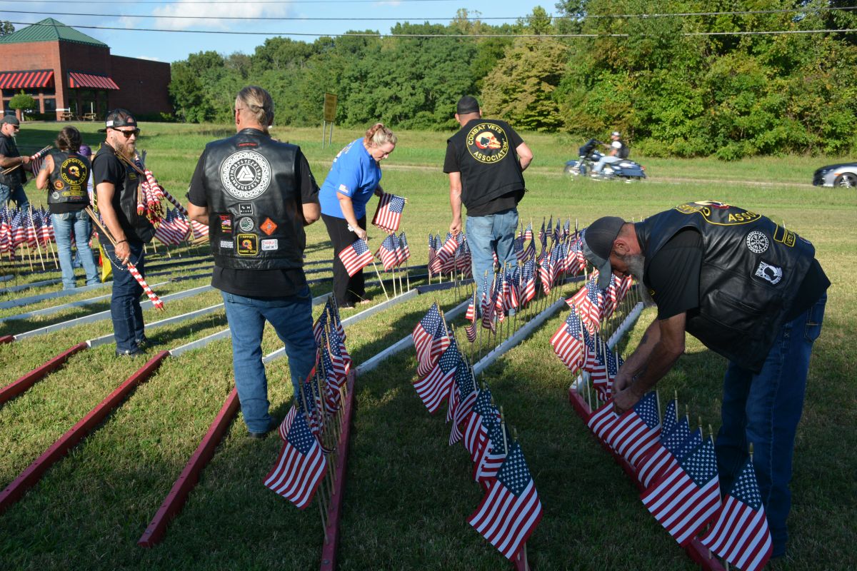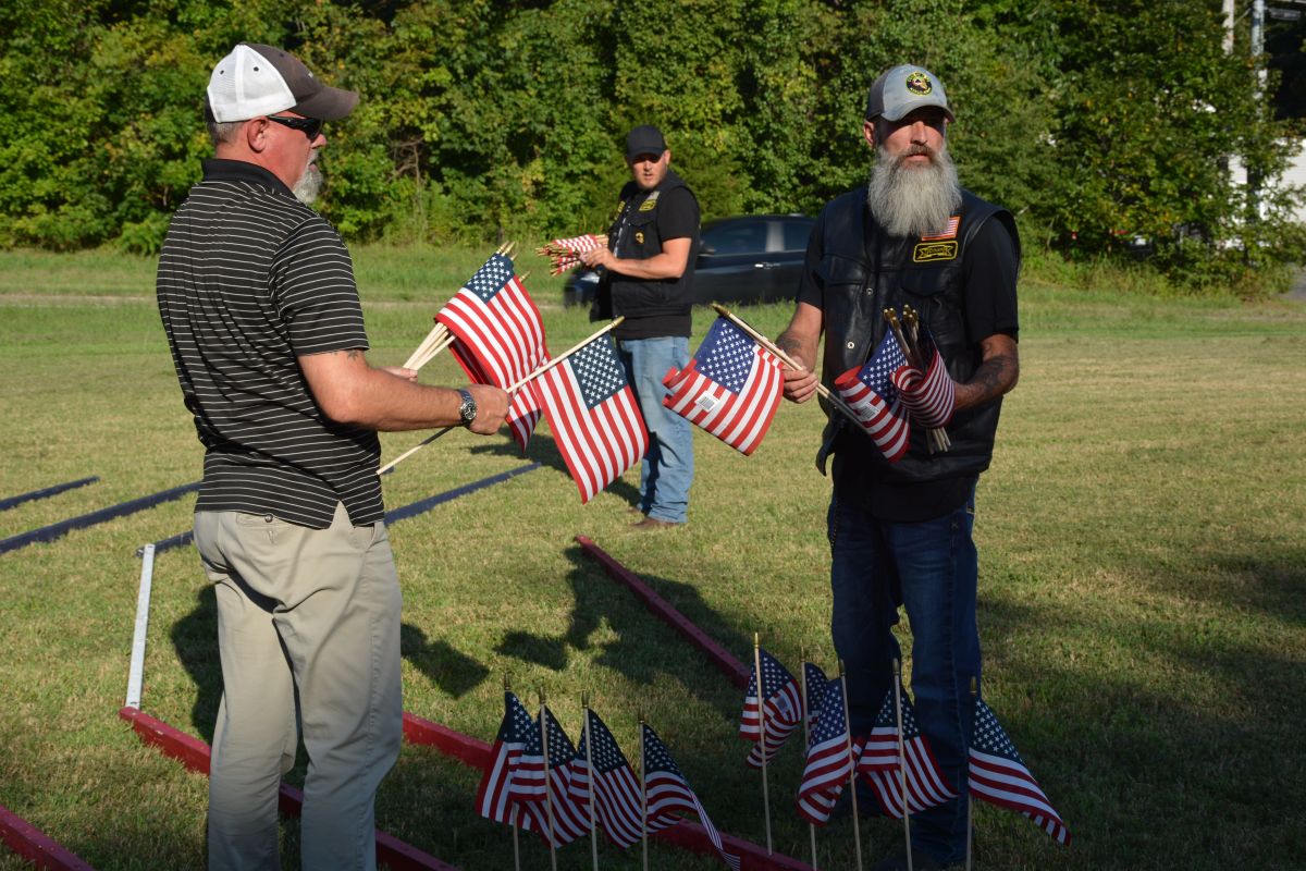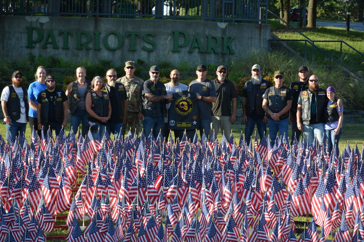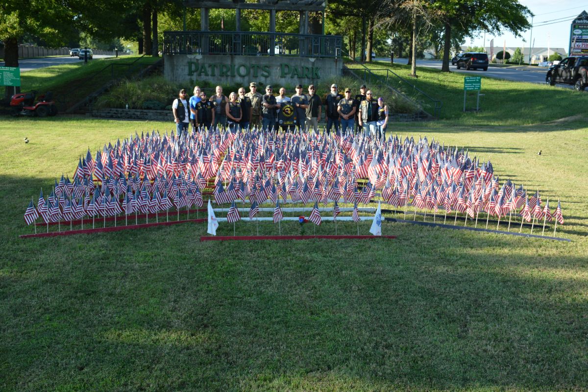 The Combat Veterans Motorcycle Association Chapter 18-2 placed 653 American flags at Patriots Park in Clarksville to remember each fallen Fort Campbell soldier since 9/11 on Wednesday, September 8 2021 (Lee Erwin).
