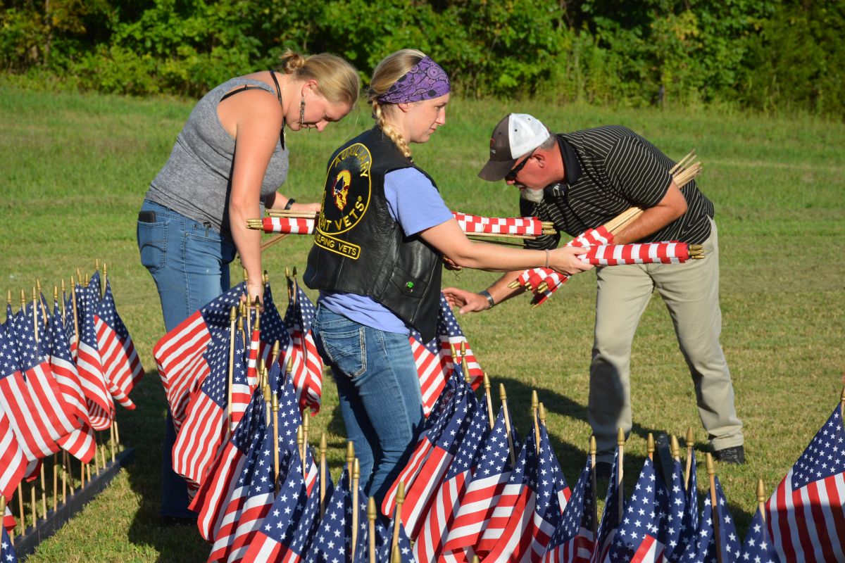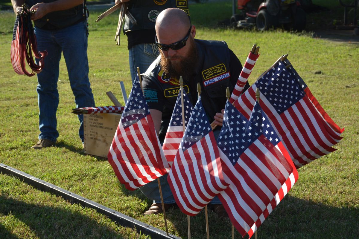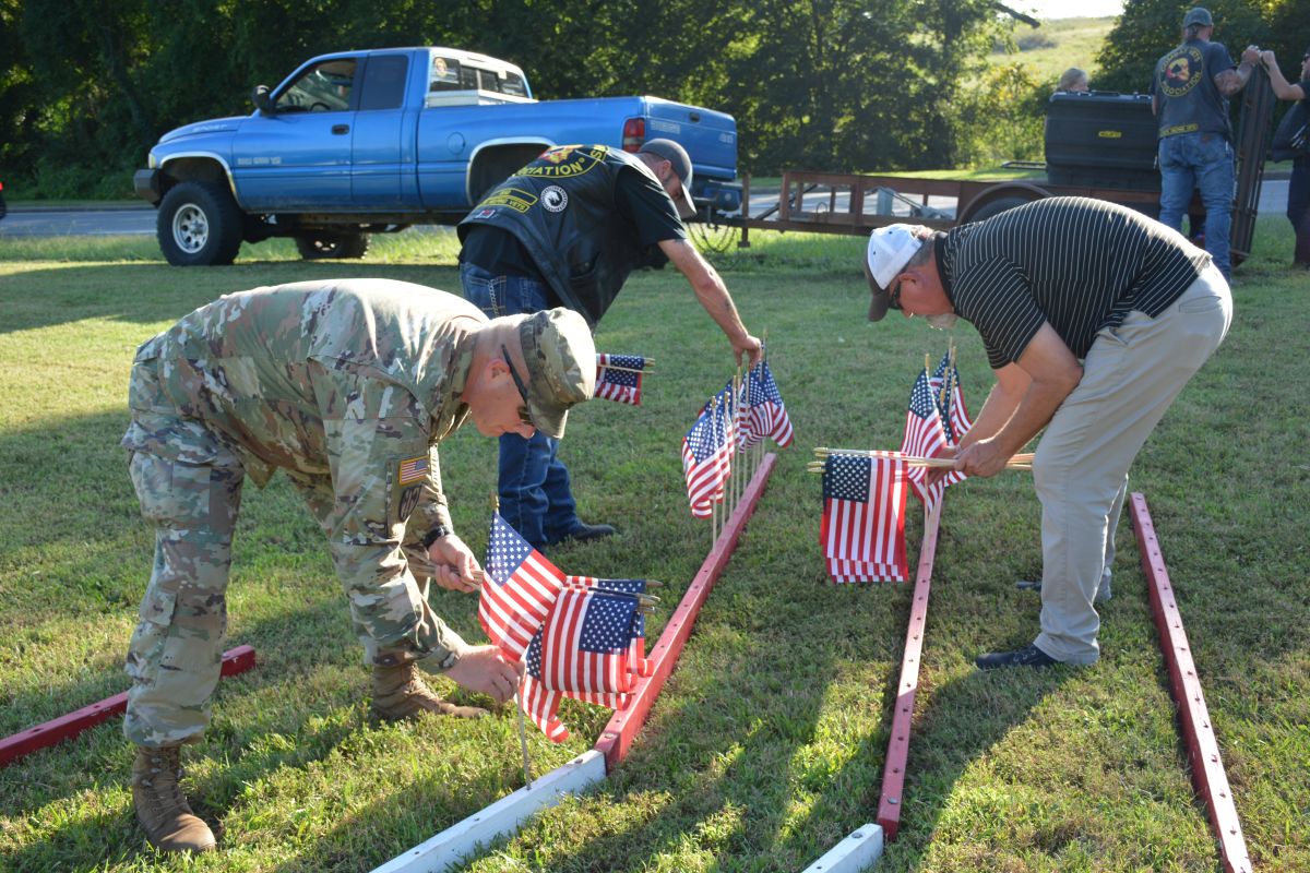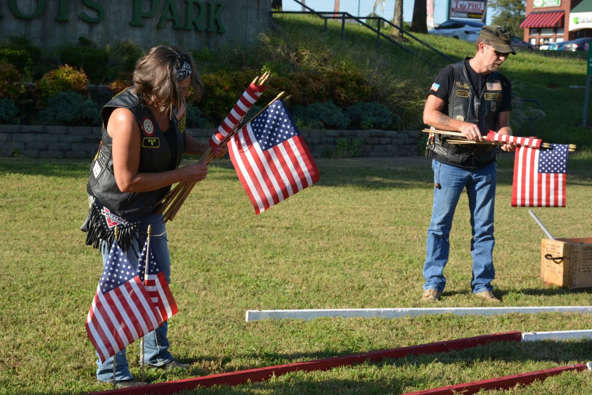 The Combat Veterans Motorcycle Association Chapter 18-2 placed 653 American flags at Patriots Park in Clarksville to remember each fallen Fort Campbell soldier since 9/11 on Wednesday, September 8 2021 (Lee Erwin).
