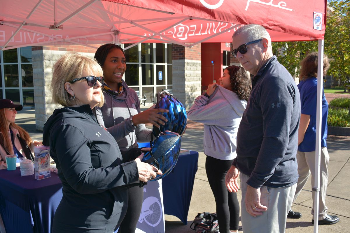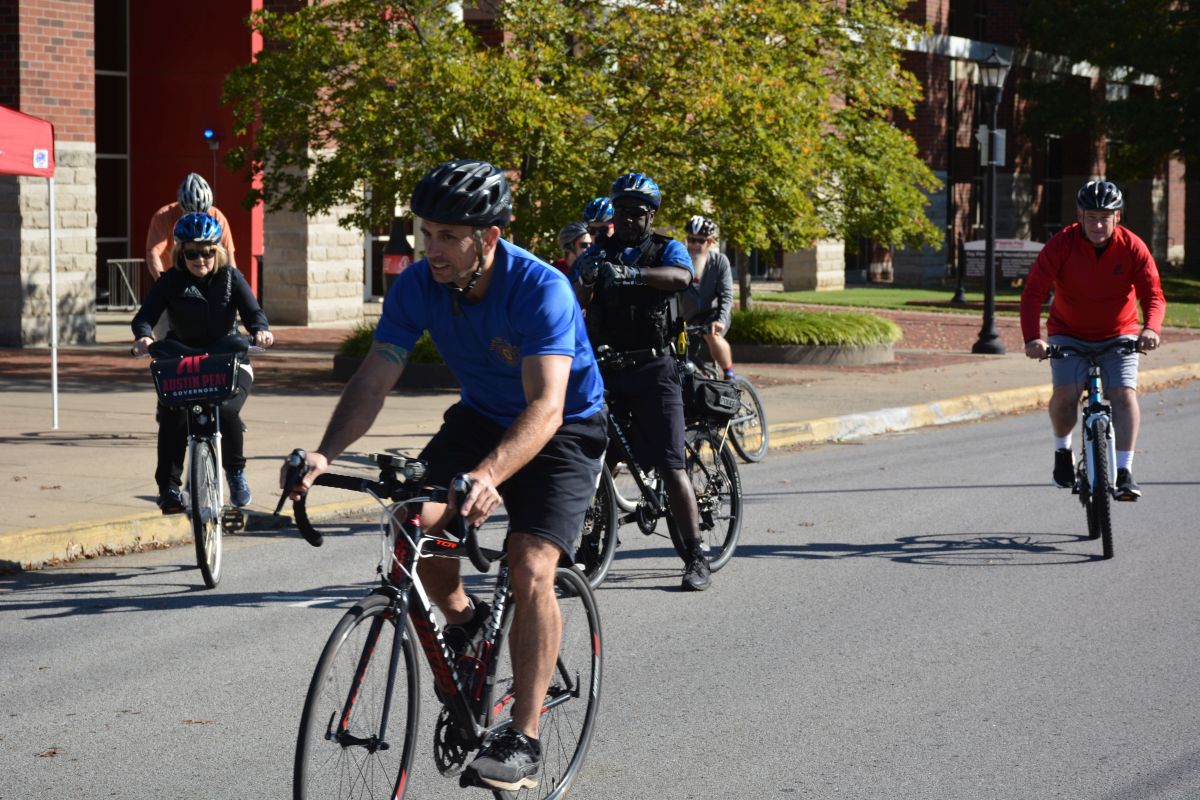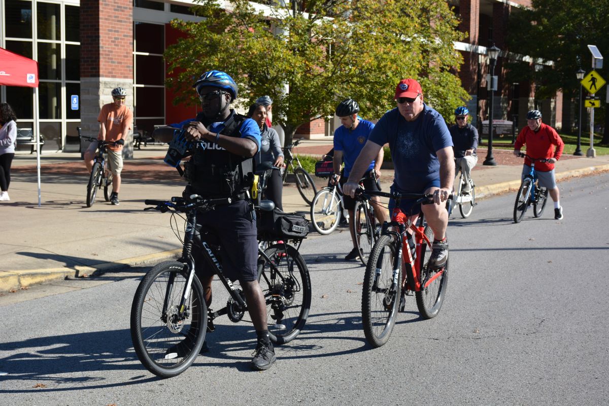 Mayor Joe Pitts, Cindy Pitts, and Austin Peay State University President Michael Licari were joined by officers with the Clarksville Police Department and citizens for the 3-mile ride starting at APSU, along the Greenway, through downtown and back to the university.