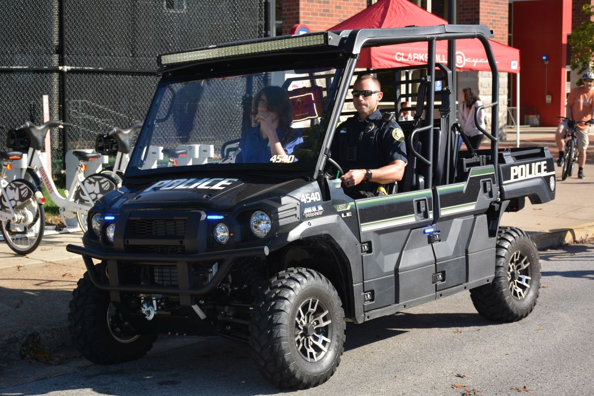 The Clarksville Police Department provides safety at the city’s first Community Bike Ride hosted by Clarksville Parks & recreation on Sat. October 16 2021. (Lee Erwin).