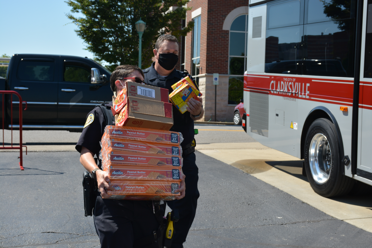 Clarksville Police Department accepted donations of nutritional, non-perishable food items at the Downtown Market this Saturday. Donations went to the FUEL Program, a local organization that prepares bags of food for children in need to take home on the weekends.