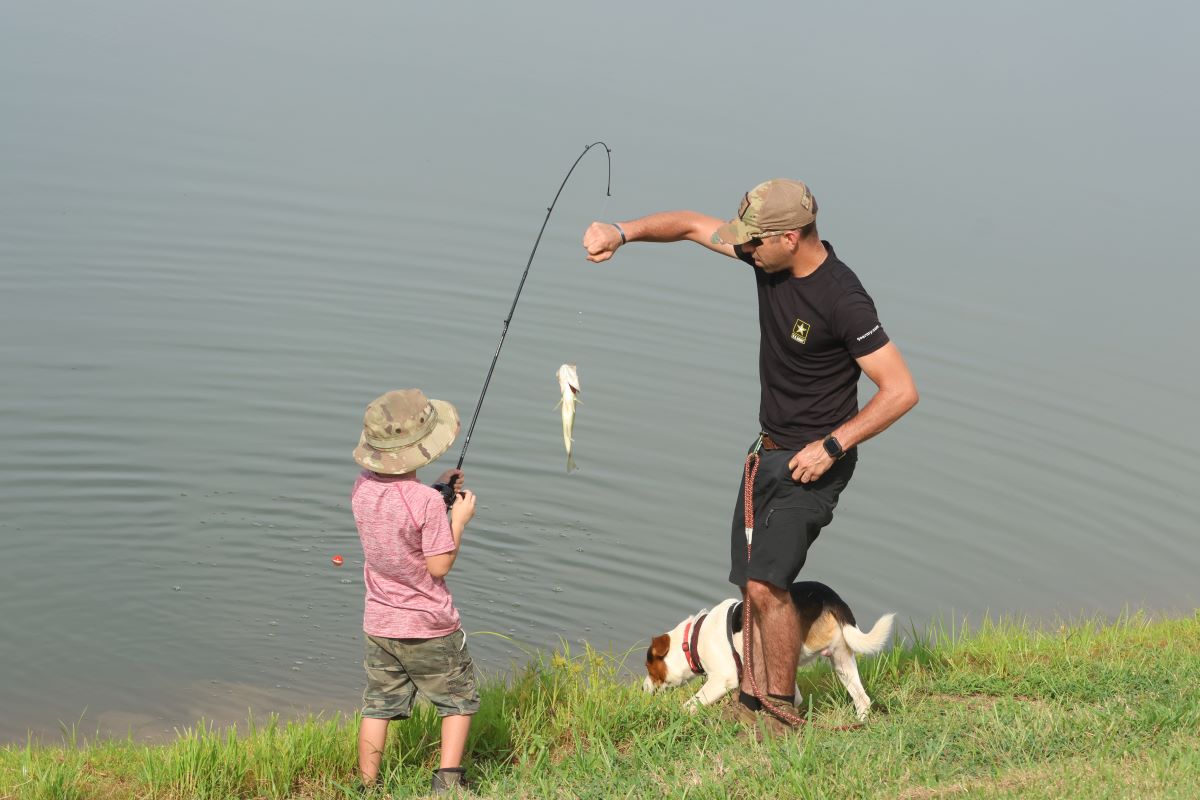 Mark Adrian was fishing with Colton Ammann and their dog Woody. “Colton is 7 years old,” Adrian said. “This is his first time fishing. I figured this is something that we could do together.”