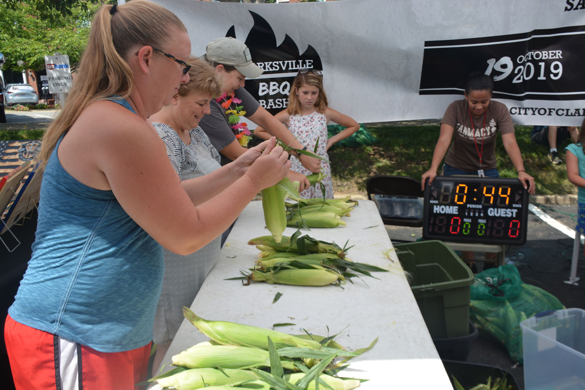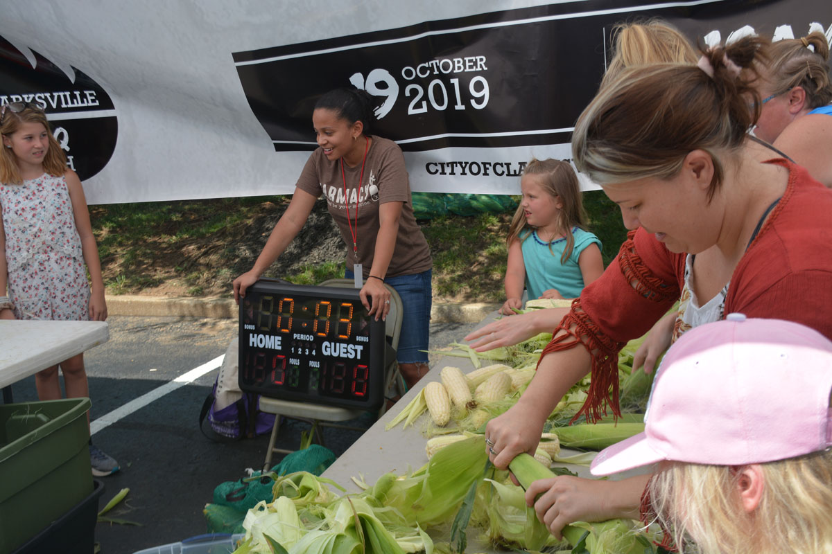 CLARKSVILLE, Tenn. (CLARKSVILLENOW) – A highlight of the Downtown Market this week was a corn shucking competition. Competitors raced against each other to see who could shuck the most corn.