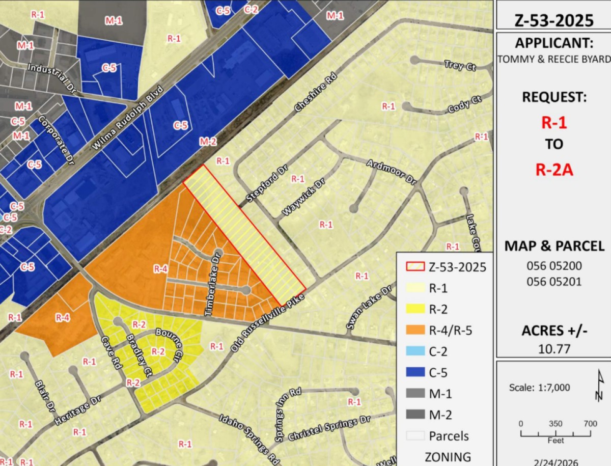CLARKSVILLE, TN (CLARKSVILLE NOW) – Last month, the City Council narrowly approved the first reading of a proposed rezoning on Old Russellville Pike amid concerns about traffic and flooding.